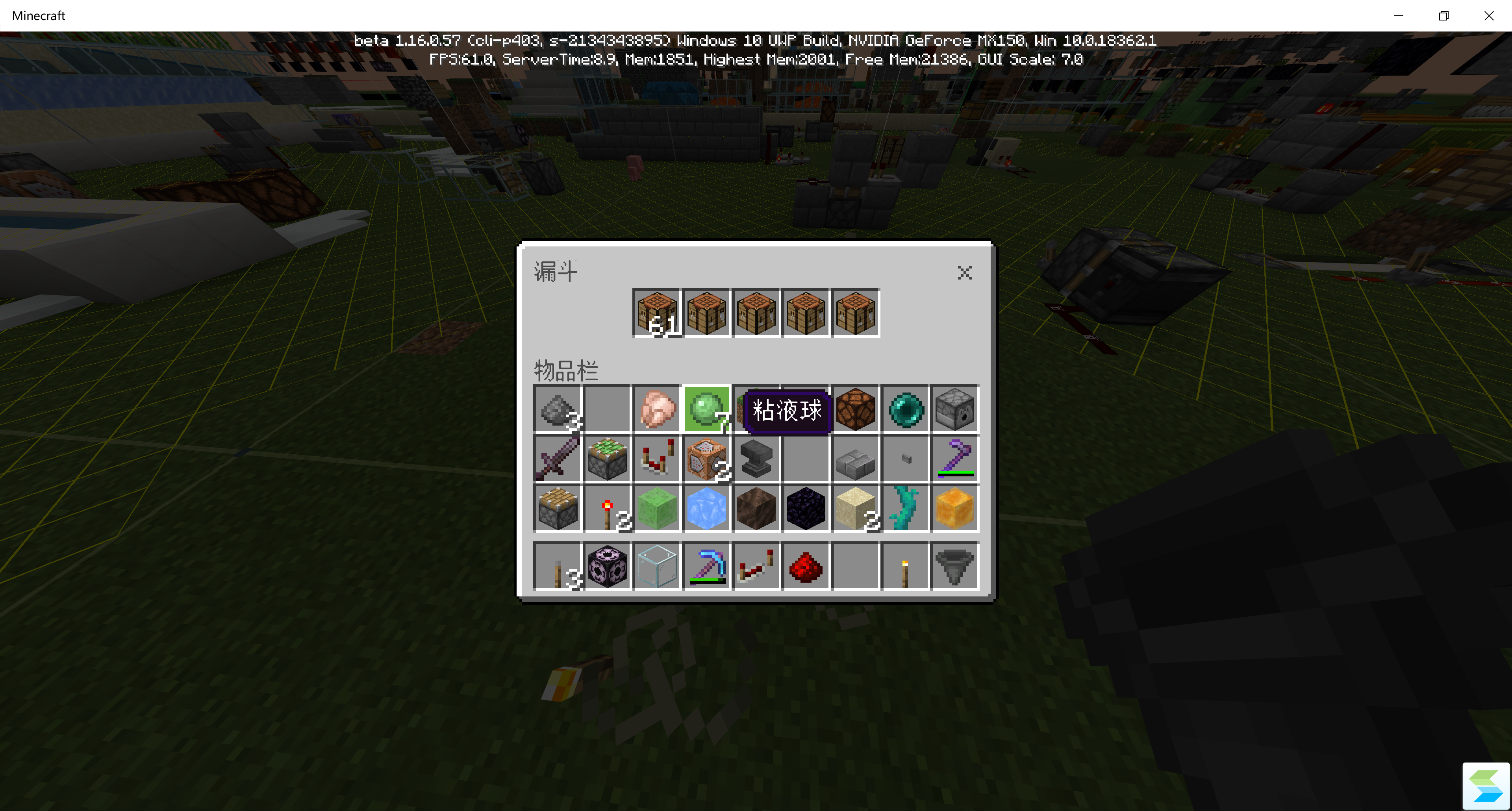 5.Take away the slime ball, then crafting tables will be sucked in.