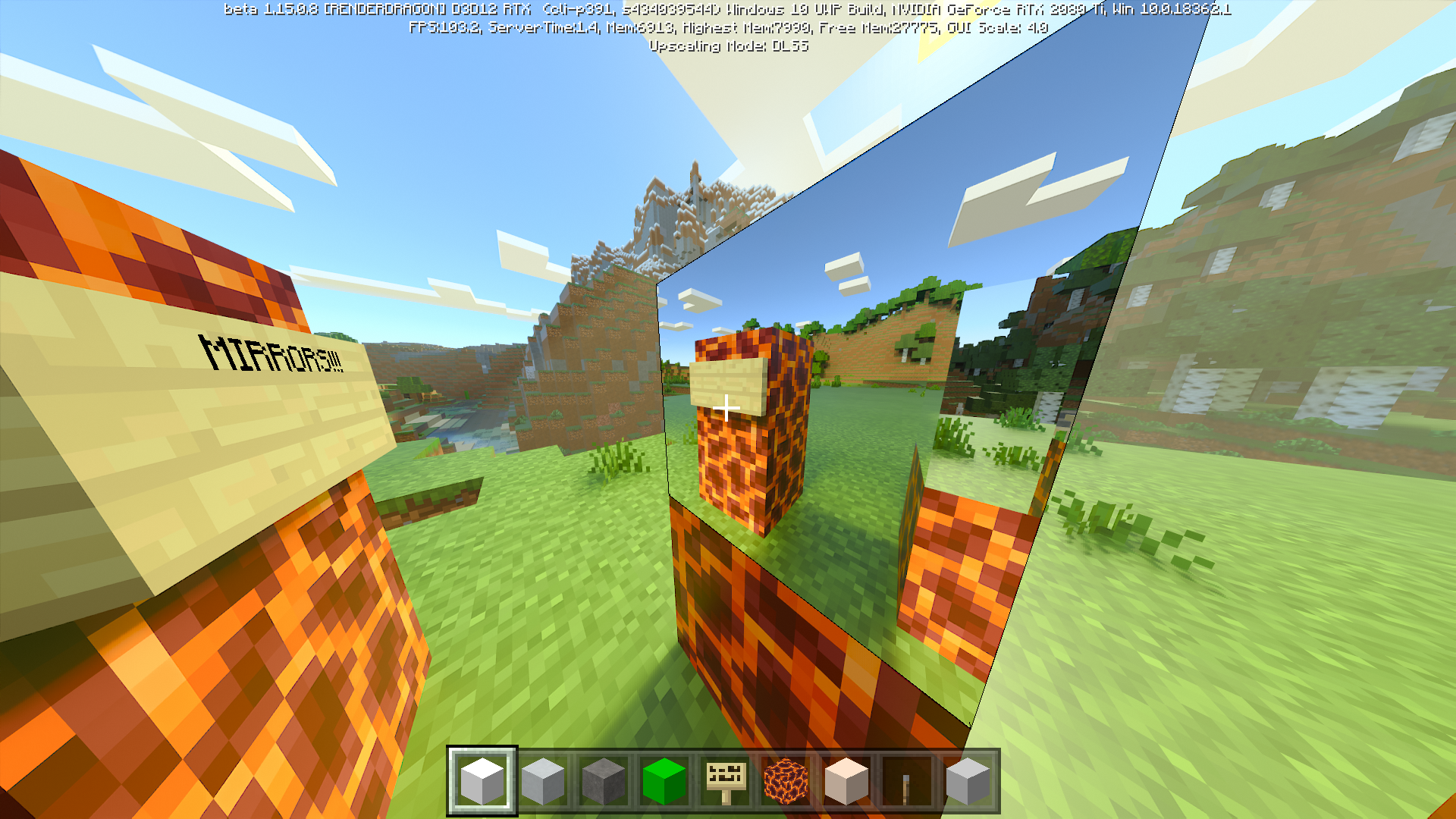 What it says on the tin. Sign text is invisible whilst looking through the mirror that is included in the RTX resource packs