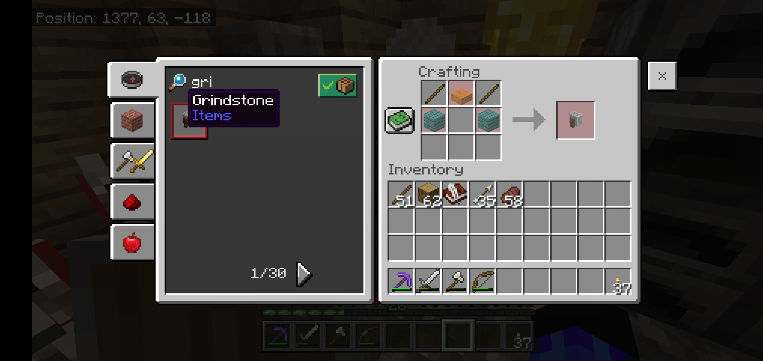 Grindstone recipes require 2 warped planks, 1 red sandstone. that is expected 2 oak planks, 2 stick, and 1 stone slab
