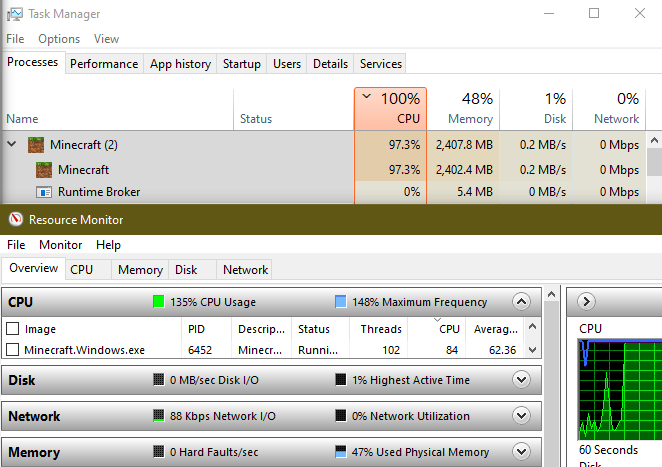 Minecraft gets consistent lag spikes when playing and worsens whenever there’s more than one player in a world, especially when attacking each other.