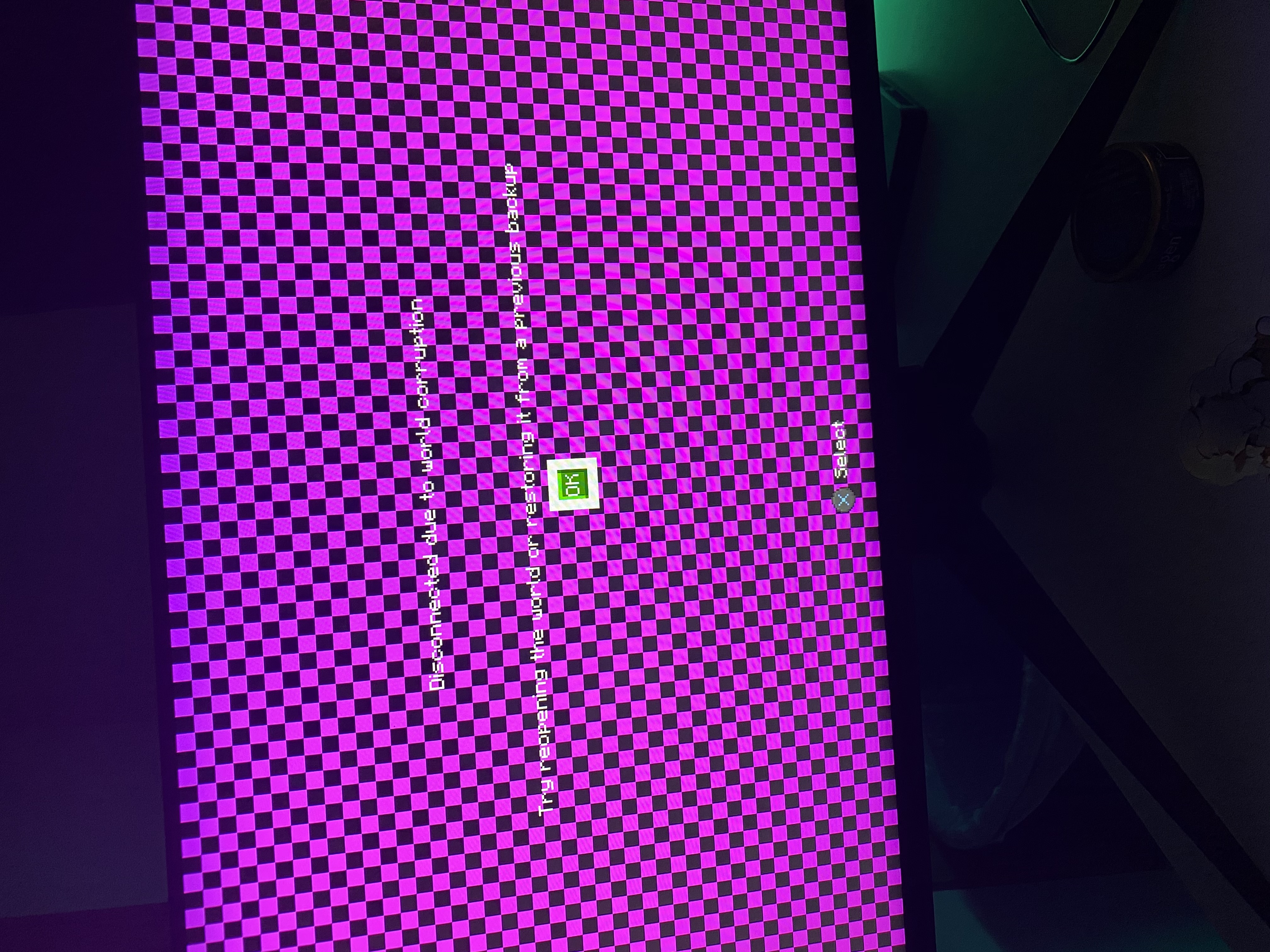 I have 4 copies of my world and 3 of them plus the original are not working at the moment. Keep getting this message whenever I try opening the original world. Tried loading the first 2 copies and got the same message but then loaded the 3rd copy and it loaded up and the save file was pretty much where I was when I logged off last. It worked for about 30 minutes and then disconnected when my friend joined the game. Is there a fix to this? I don't want to load the 4th copy if its just going to corrupt.