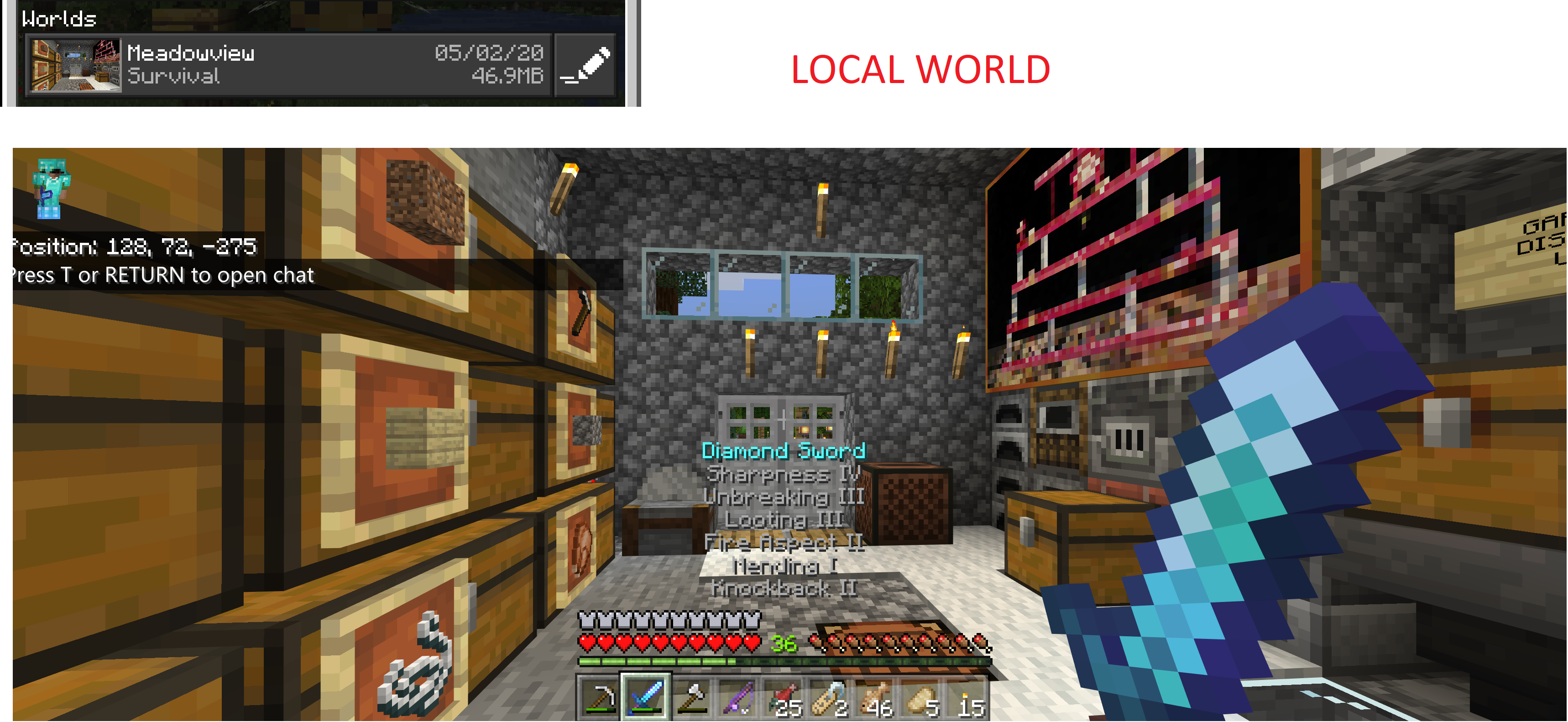 ...and import it locally and play, you'll notice that the world loads fine. Items including the enchanted sword are perfectly in tact.