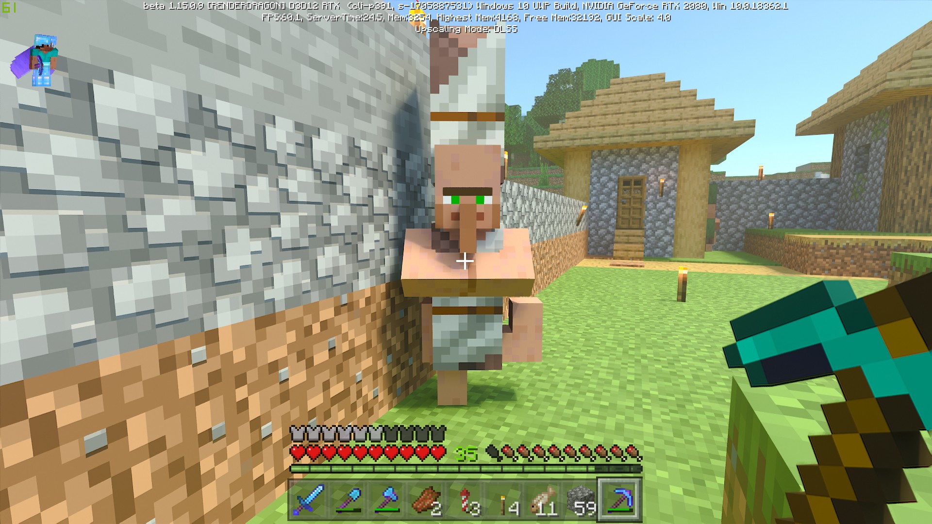 Found a villager that looked like a star trek transporter accident. He went back to normal after reopening the application. (See screenshot.)