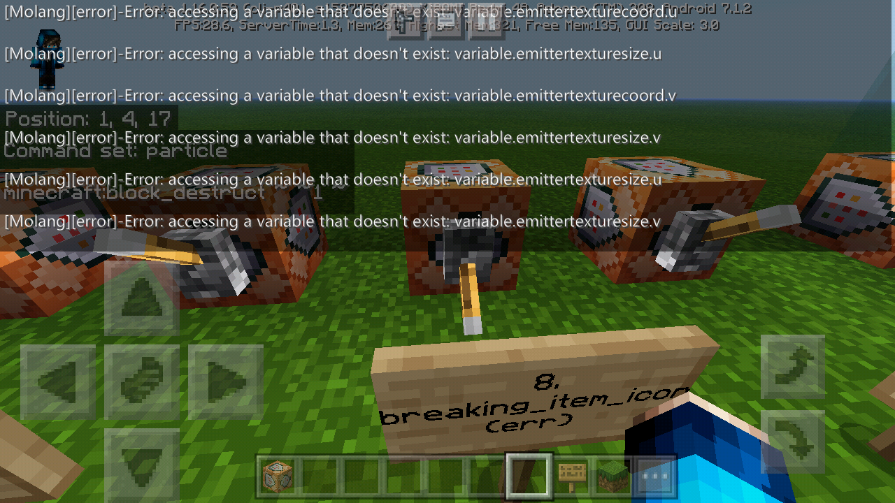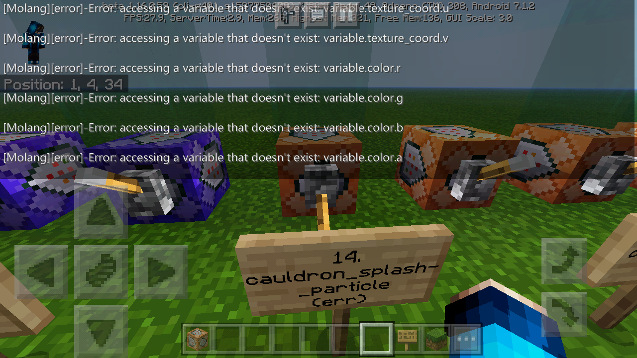 There are some error code of the particles, i'm using Xiaomi Redmi 4A phone, the errors usually appear on low end device. How to reproduce, using /particle commands. There are lot of particles that errors. I've made an map, included and marked as 'err' for the bug. Here's the link : https://drive.google.com/file/d/1z5407DNL5C0IAwtBDMqoCdtw_pOGiYmC/view?usp=drivesdk