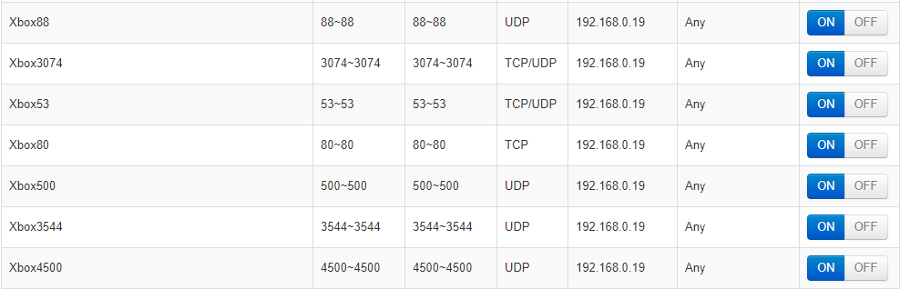 I've port forwarded all the ports, attached a picture based on the ports at the following link: https://beta.support.xbox.com/help/Hardware-Network/connect-network/network-ports-used-xbox-live