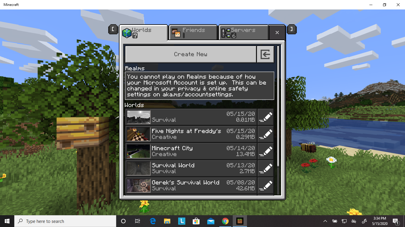 When I was scrolling through my worlds, I found a world with no name, and when I clicked on it, there was only a about 150x150 world, that I could see. Sometimes, I randomly got damaged, and I also spawned where the blocks where invisible. Before I found it, I had uploaded 2 worlds in-game. The first world I uploaded was a FnaF world, which uploaded successfully, and the other one I uploaded, was a corrupted world I had been trying to fix for a while, which failed to upload (please help me fix this). I also notice that my FNaF world is not in the list.