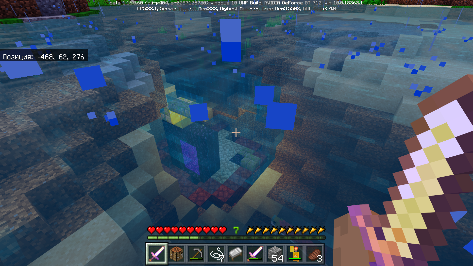 In my world in a single player game, I discovered a ruined portal underwater. It's strange that everything around is dry