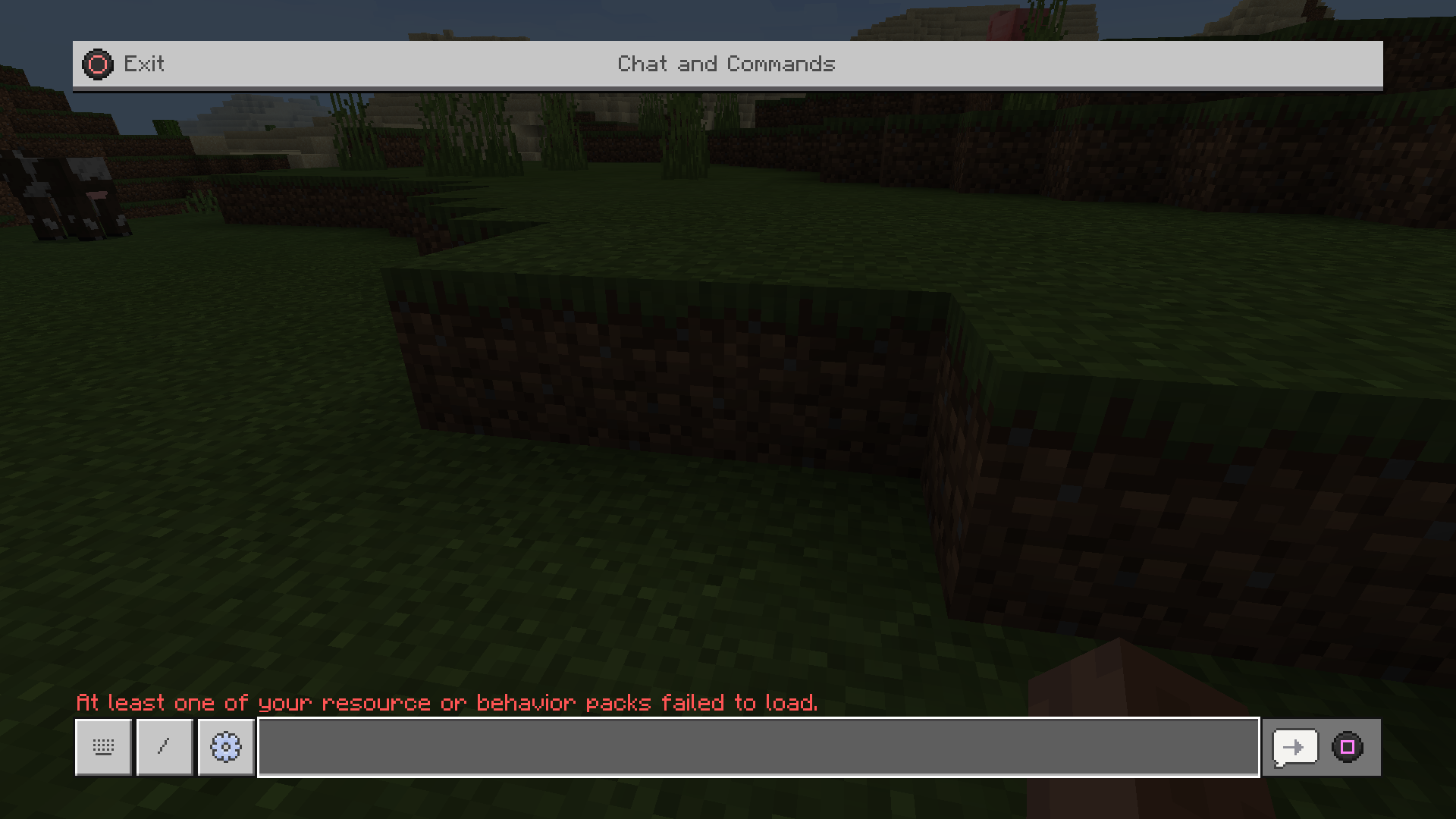 When the game restarts, downloaded resource packs get corrupted. It shows up as "Unknown Pack Name" with a checkerboard texture in the resource pack list, and the message "at least one resource/behavior pack failed to load" appears in chat.