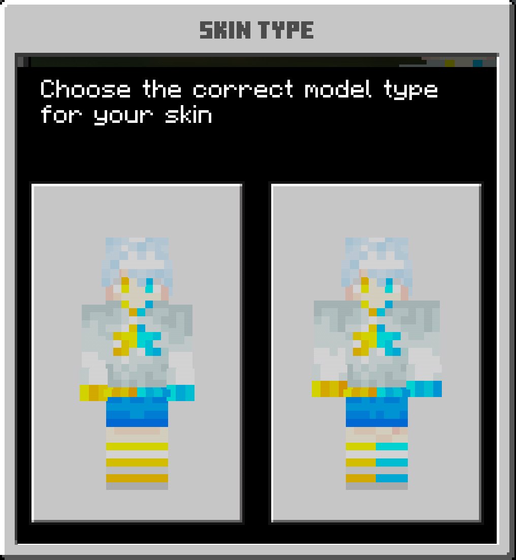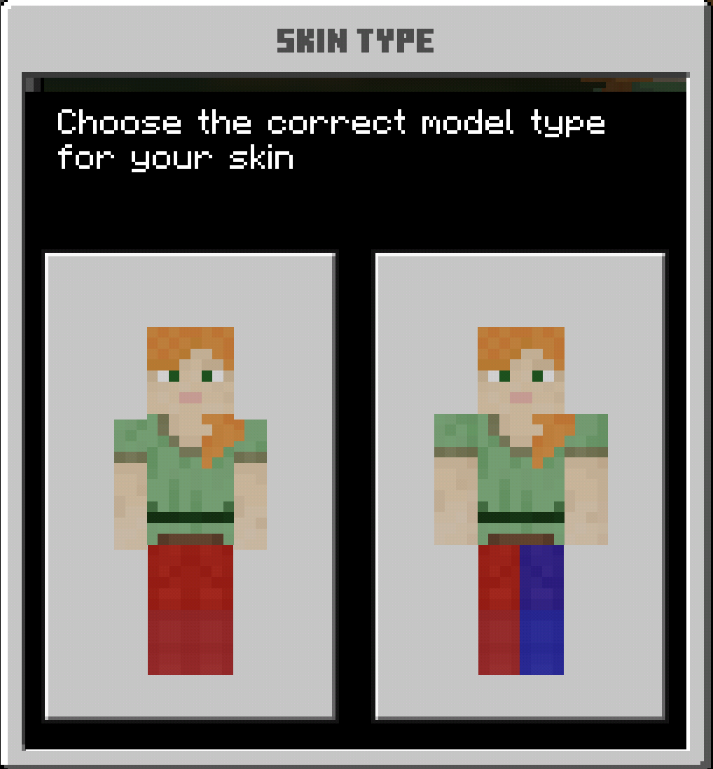 The left and right legs in the slim model for skins are using the same area in skin files. I've marked Alex's legs in the second image to explain better.
