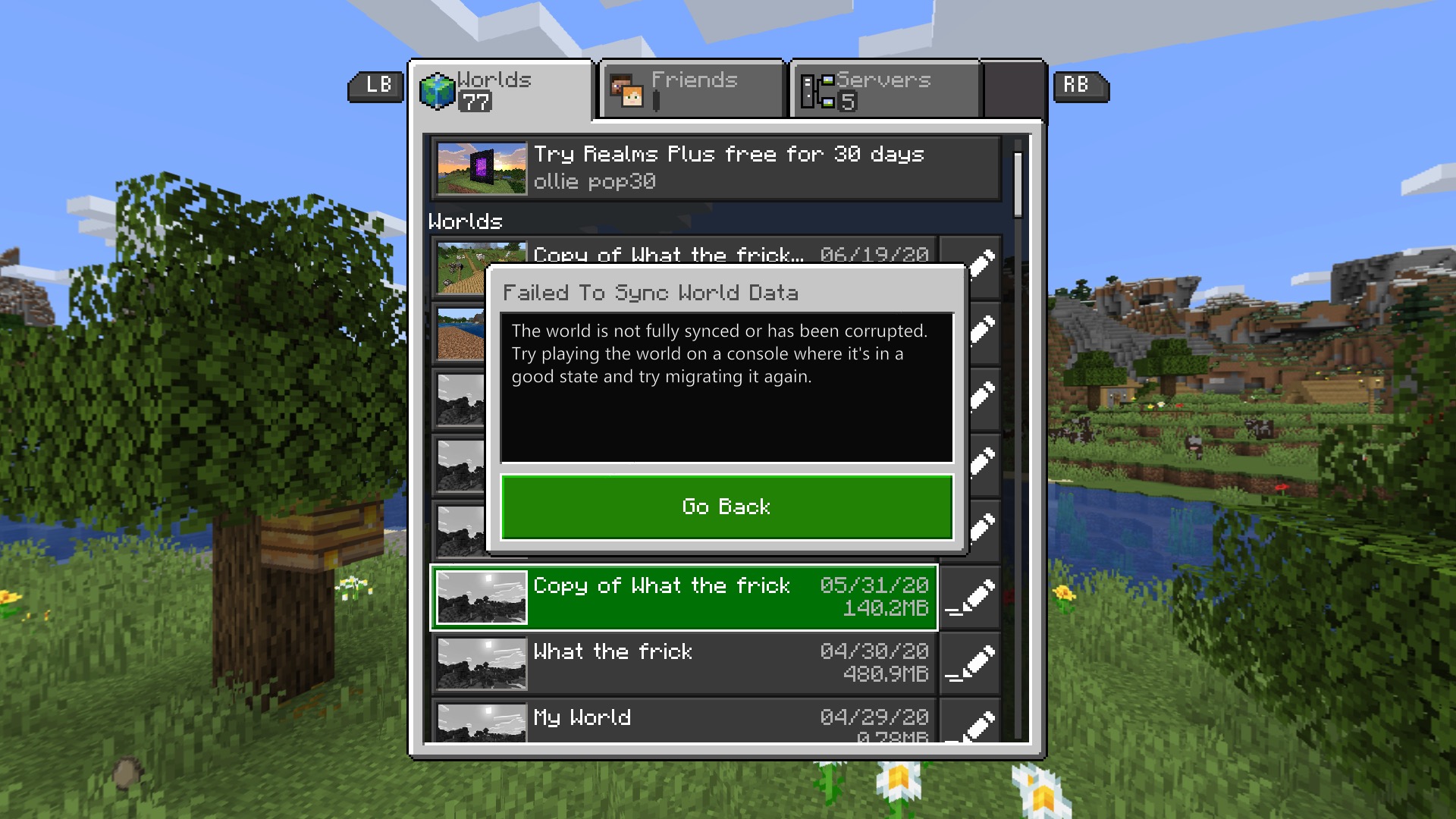When I load up a world it will constantly sync or it will say to play the world on a console where it is in a good state but it won't load on any console when I do that or it says that it's corrupted and it does this to every one of my worlds