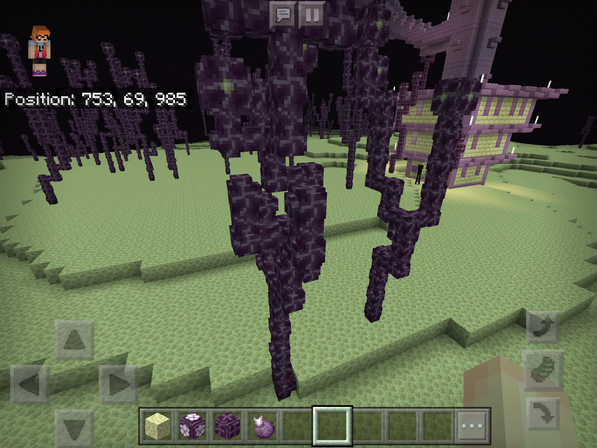 I was exploring the end in creative mode, when suddenly, I noticed a bug. This bug is that chorus plants are generating in a glitchy way, such as chorus branches w/o flowers and chorus plant blocks not on top of end stone.