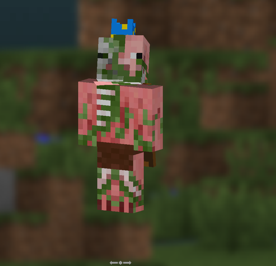 The Zombie Pigman skin from the 1st Birthday skin pack has been messed up. The bottom texture of the head has been swapped around the worng way. The front is facing the back and the back is facing the front and it looks really wierd.