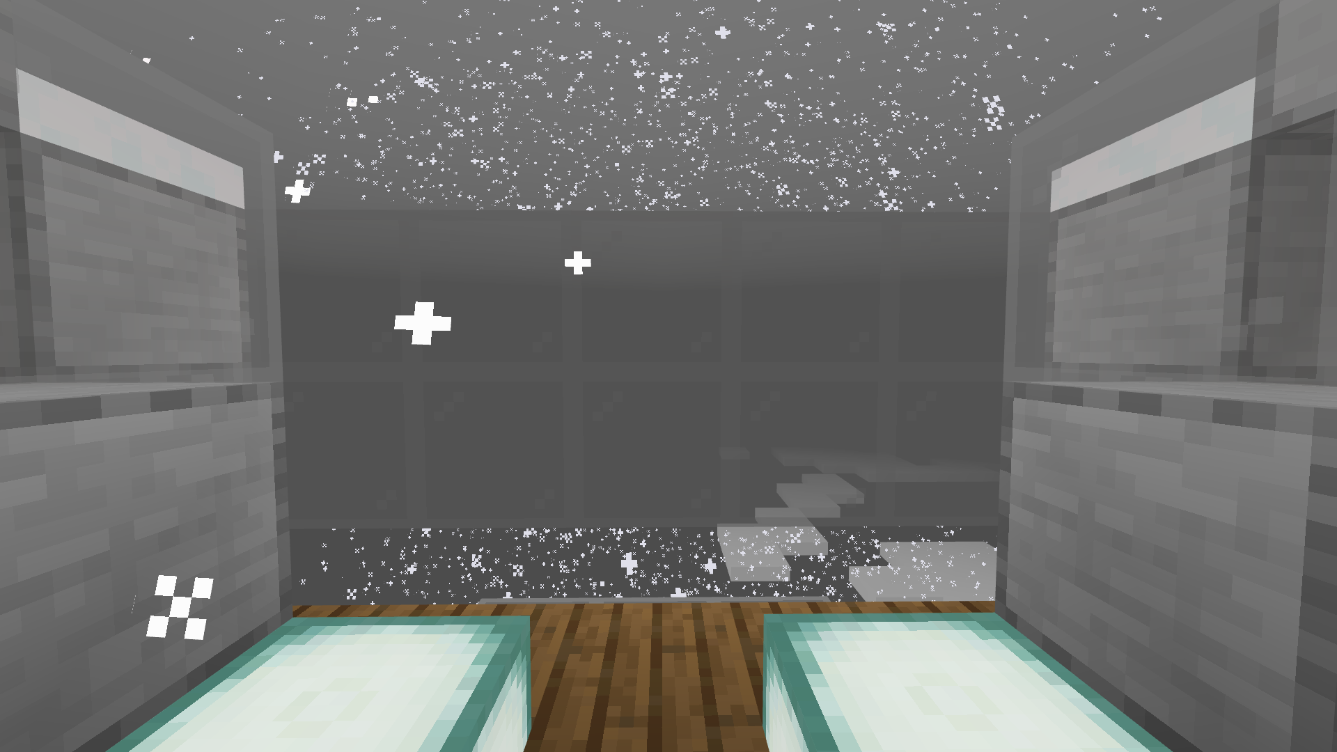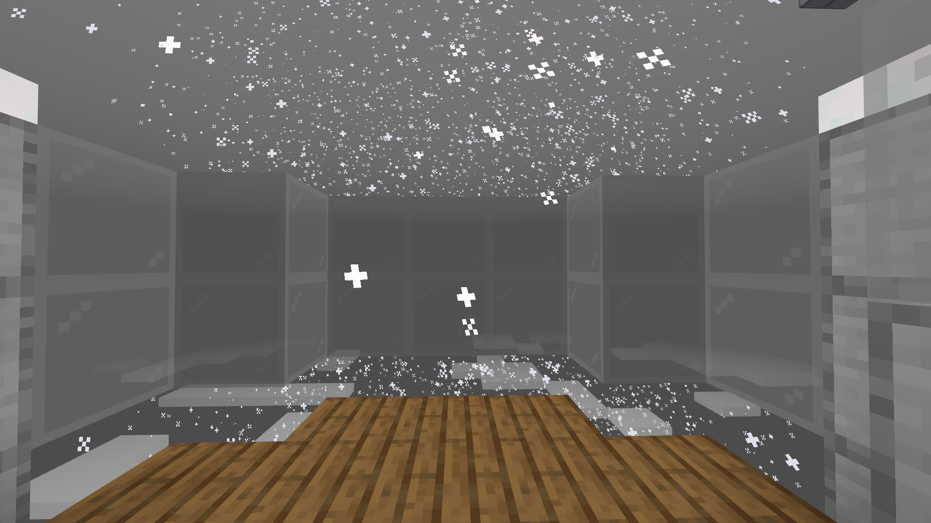 the snow particles don't appear through the glass
