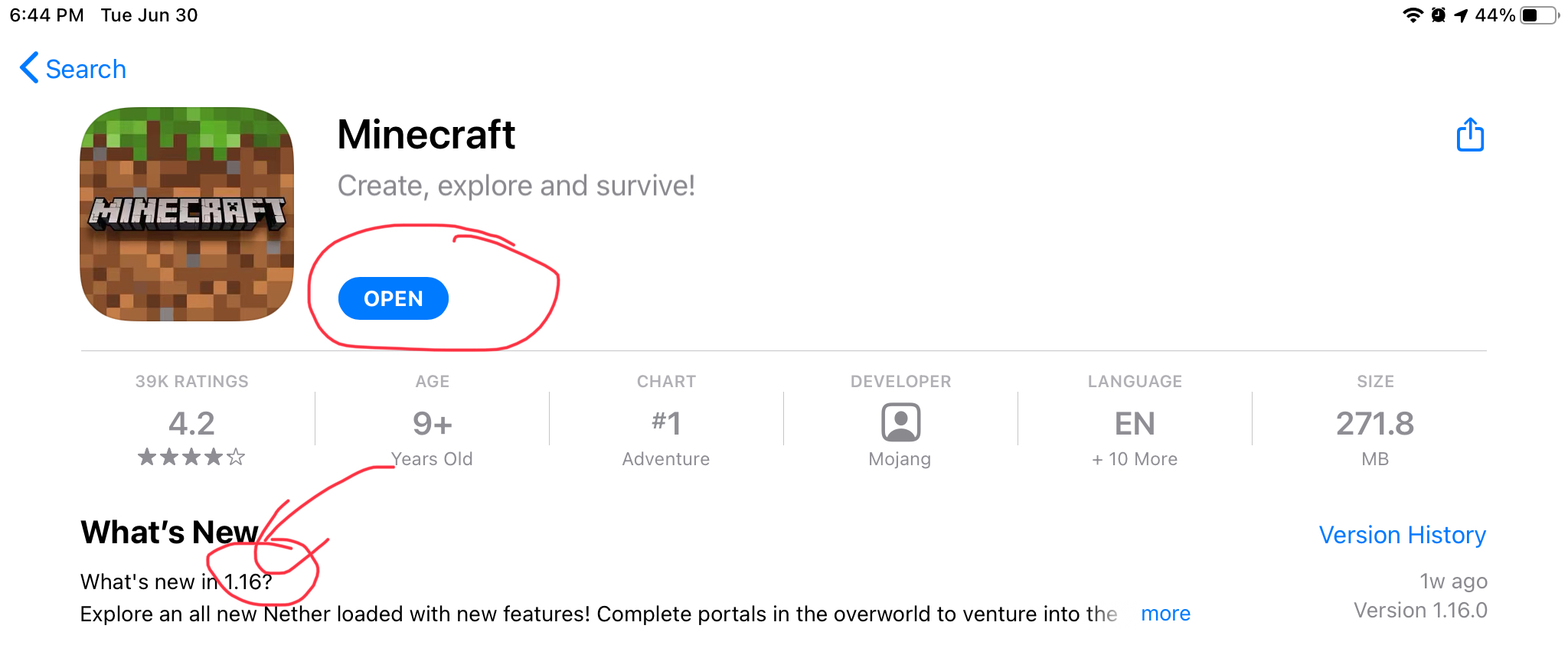 When I go to the App Store, I should be able to update Minecraft to 1.16.1.