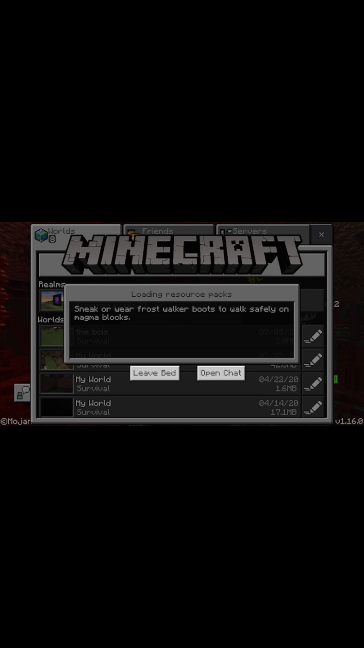 Every time I try to go into my Minecraft world on my phone it bugs out and in the world I am in a bed and it doesn’t let me get out before it bugging out