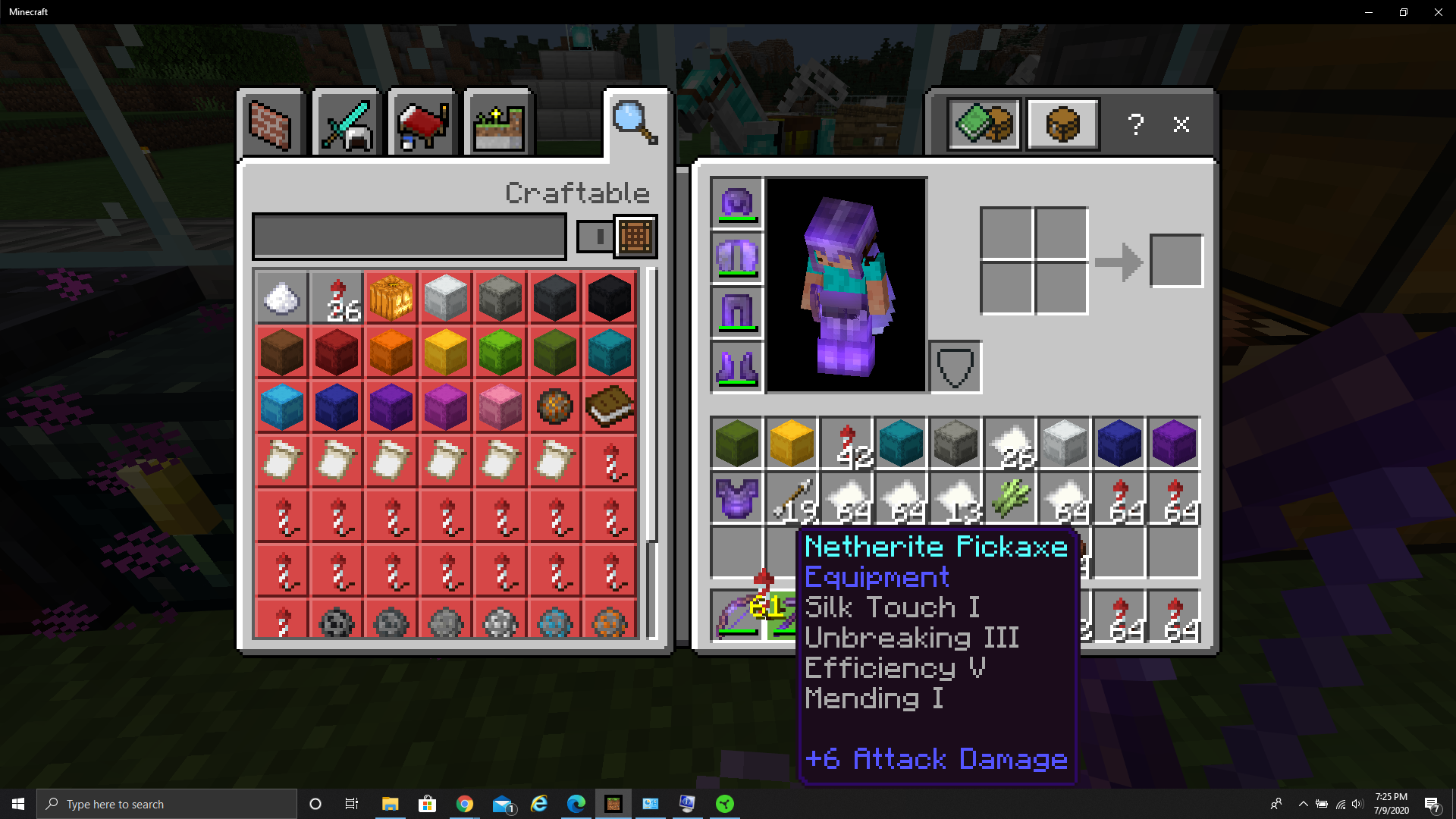 When an I have a full inventory and I try to shift click an i couple of items from the crafting guide, the cursor gets stuck on the item I tried to craft with a number corresponding to I think the amount that was there. Exiting and reentering the crafting section does not do anything. The only way to get rid of it is to exit the game. I can shift-click other items to move them to a different chest, but I cannot click on anything in the craft menu