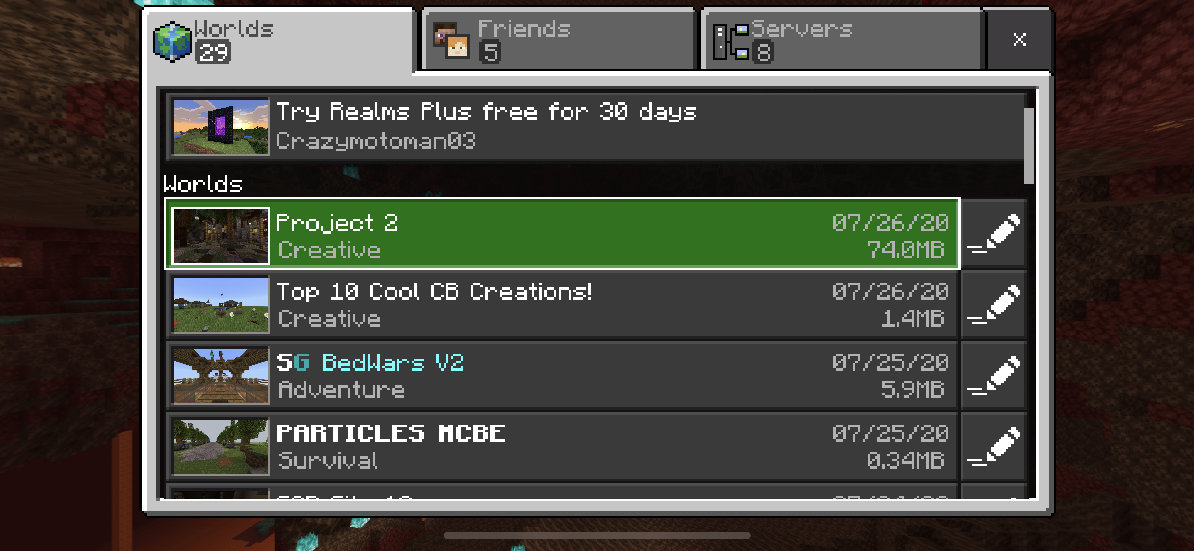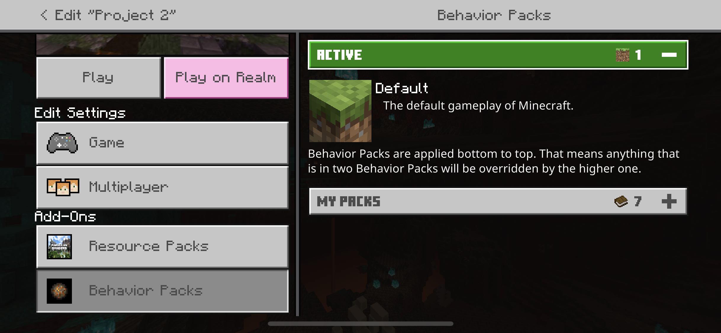 I recently began building a larger build project with some of my friends, and I have regularly been backing up/copying the world in game to avoid any accidents that would result in me loosing the world. I began testing a small variety of add-ons and red piece packs to improve the visuals and storyline functions on the originals world which didn’t seem to have any issues. As I progressed I decided to change my add-on testing to the previous world copy that I had, but when I loaded an add-on it corrupted the world copy. Once that had happened I deleted the old world copy and attempted to create a new one from the original world, but that is where the issue begins.