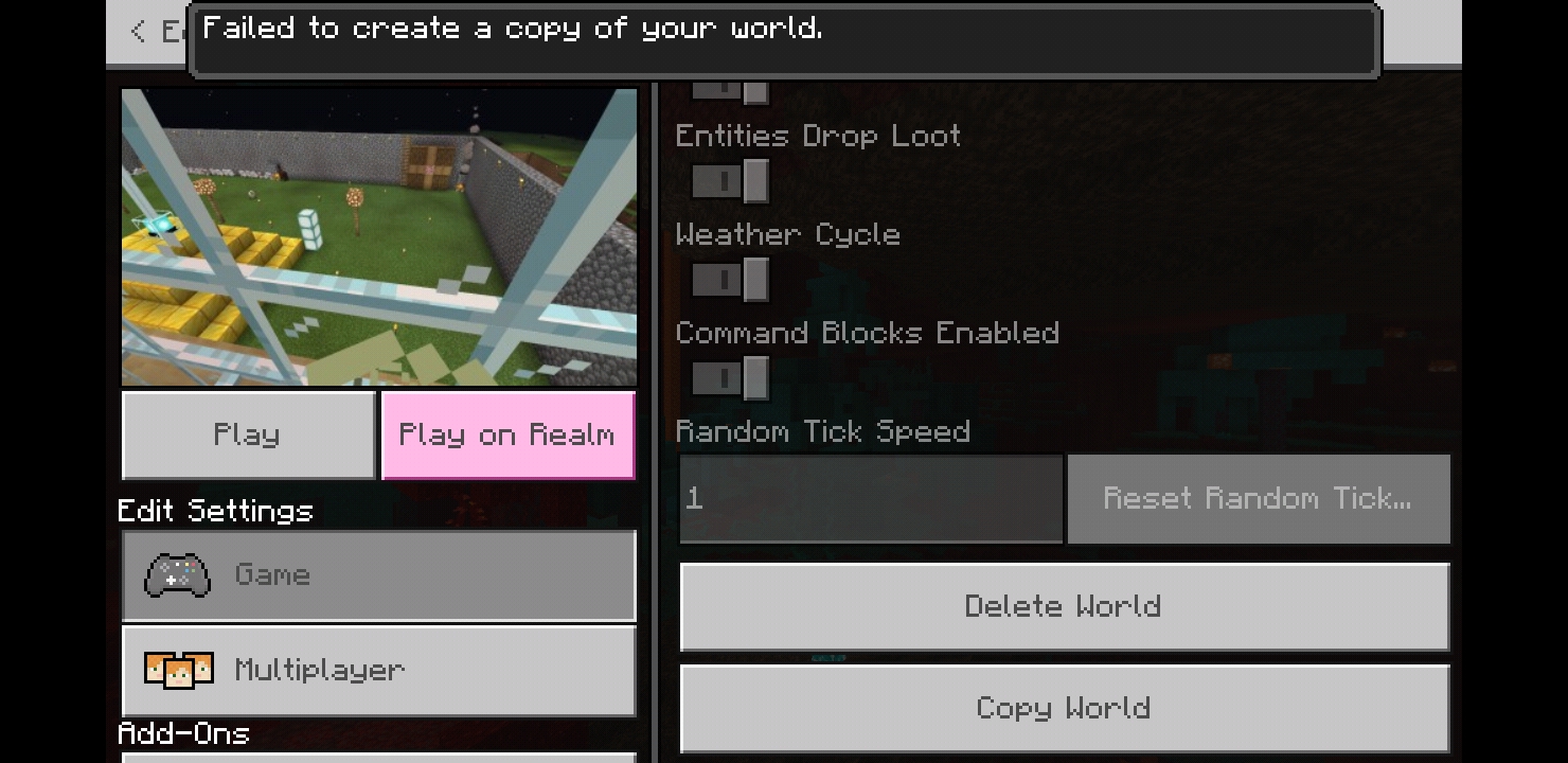 hi, this is happen last time before and i think they fix it l, but my problem was it happen again, i can't copy my world again but my phone have a lot of free space memory.