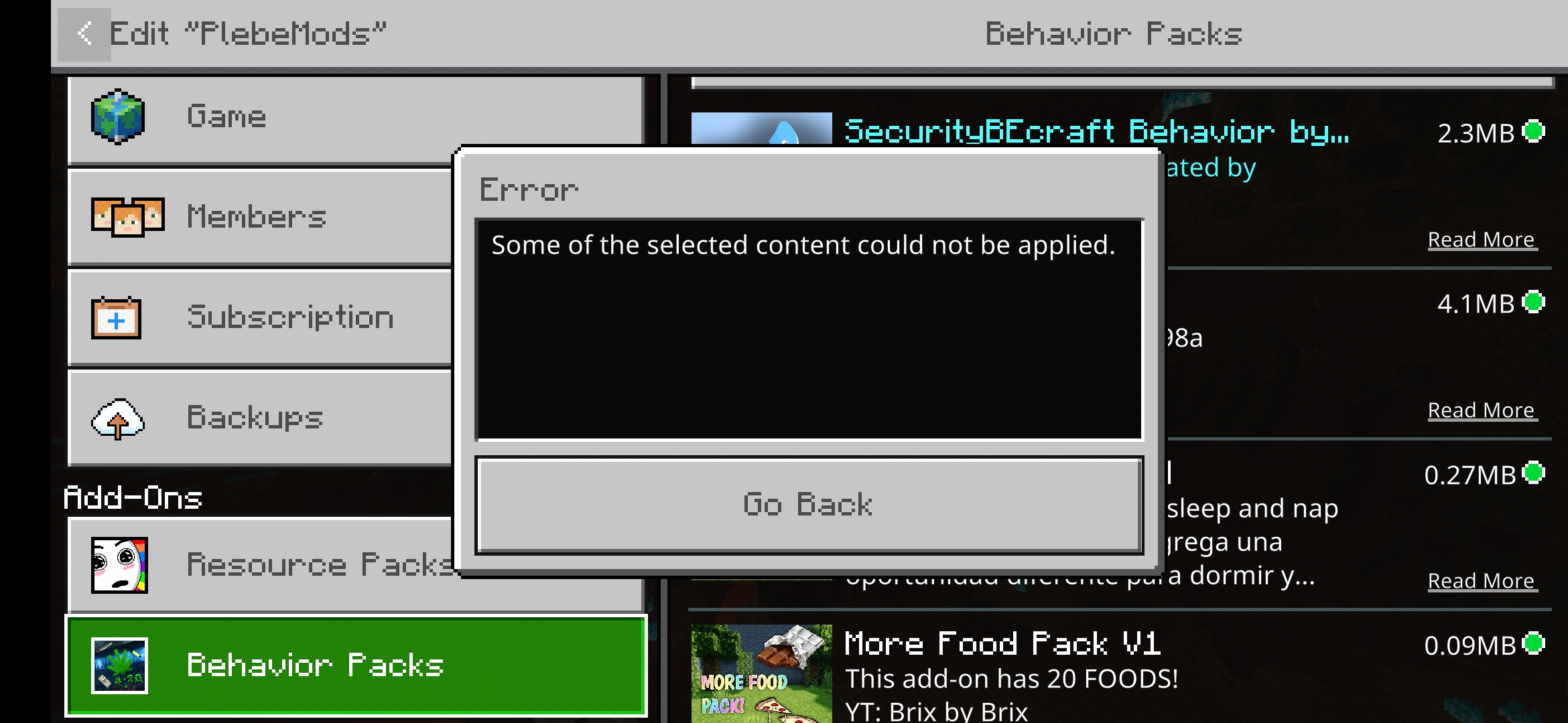 When you added any addons it does not allow me to add it and it marks an error and it does not allow me to open the realm until about 2 hours later