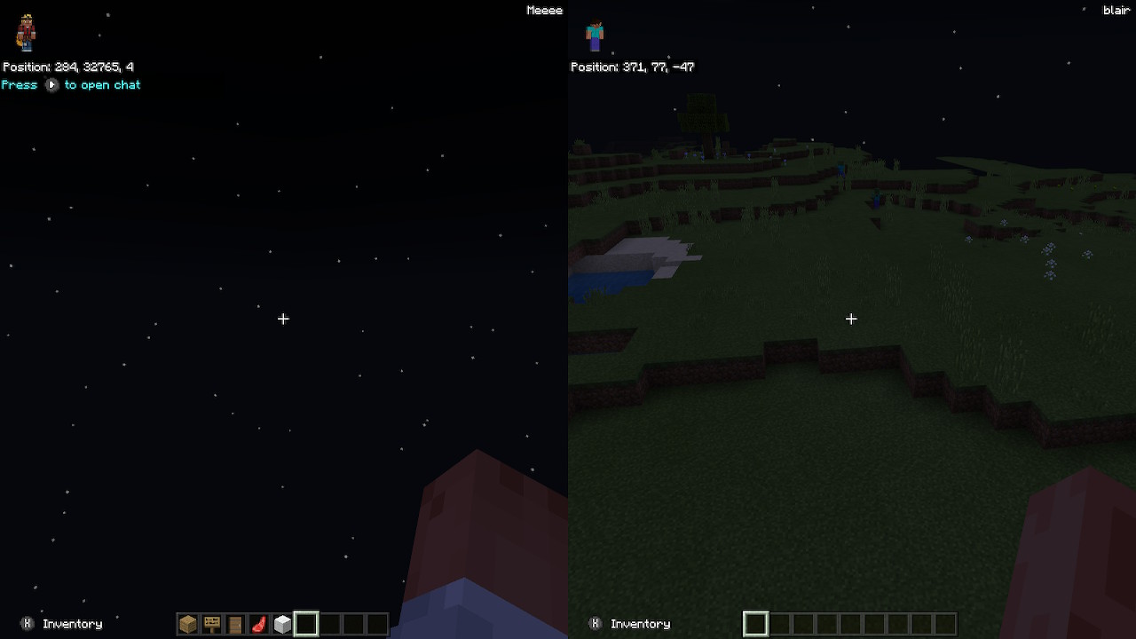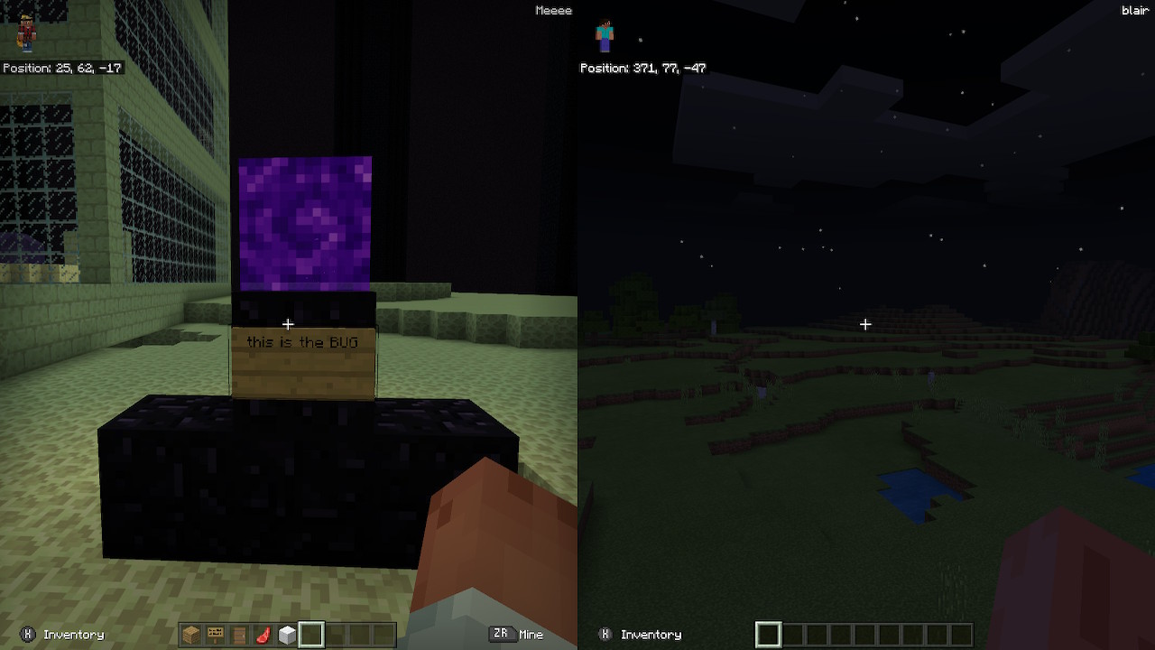 when placing nether portals with the setblock command in the end you get taken to a world, where you cant mine, place, and if you teleport to another player you can move but it looks like you are walking in place to the other player. also when you spawn in the overworld theΒ Y coordinate 32765