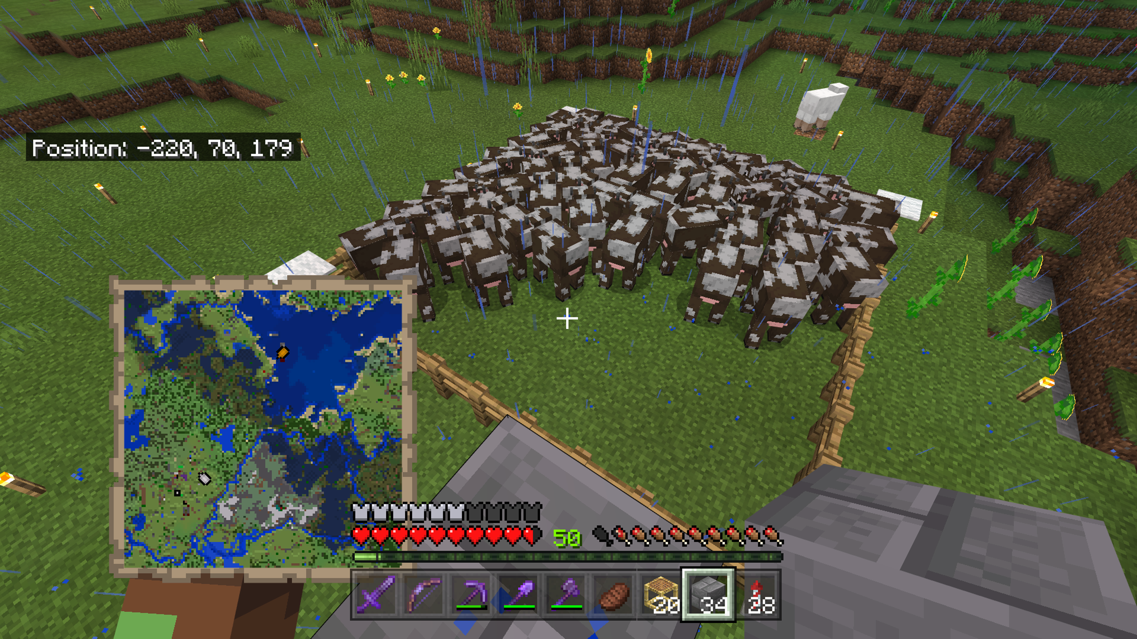 Mobs seem to cram into into the northwest most corner of a fenced area.