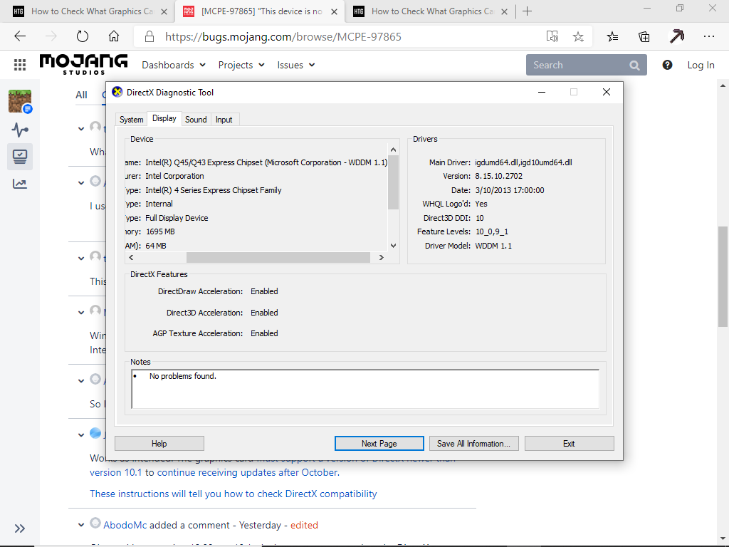 Windows 10 computers with graphics cards that don't support Direct X 11 - like this Intel Q45/Q43 chipset - are also discontinued.