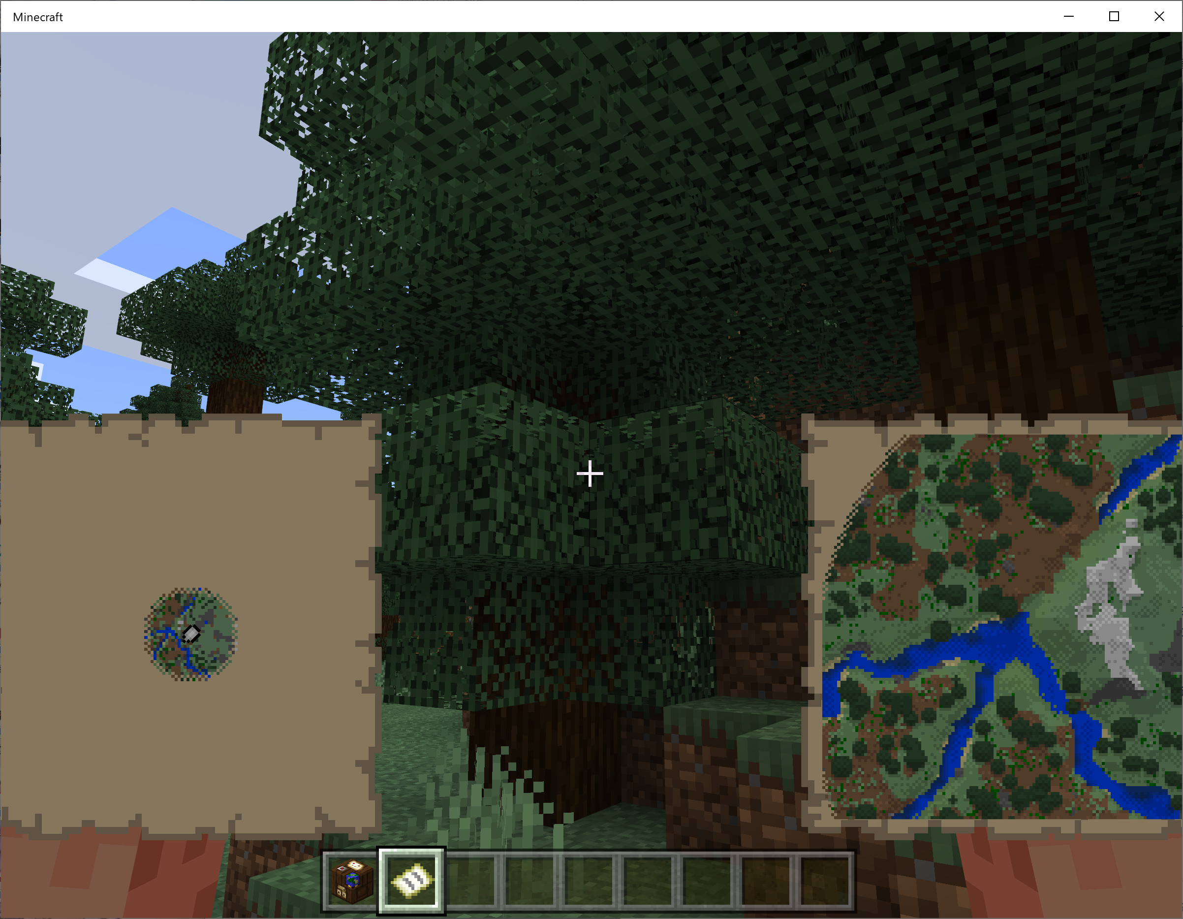 The pointer is normally displayed at the current location on the map you possess from the beginning, but when you create a second or later map (or create from an empty map if you are creative), the pointer of the current location is not displayed.