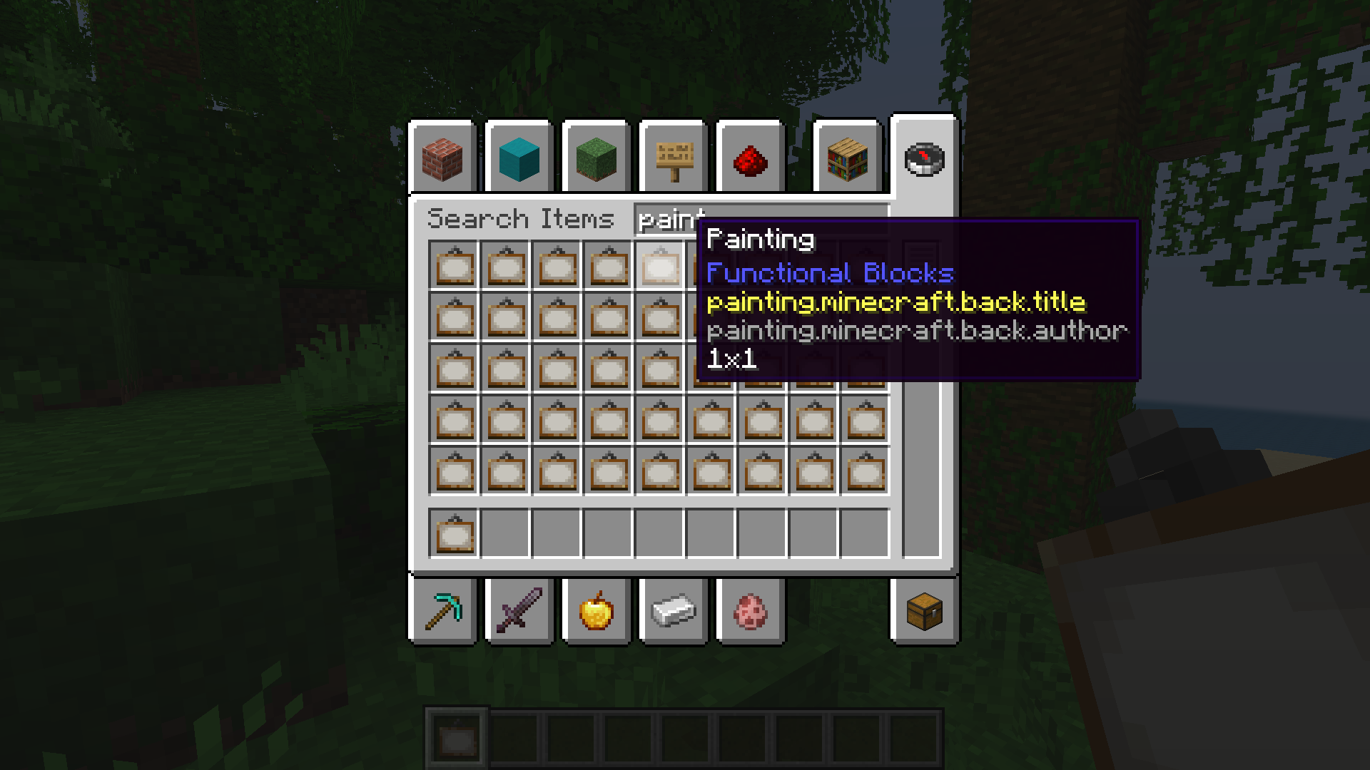 ✔ Notice that the painting variant(s) appears in the Creative inventory and paintings can be placed on walls as intended