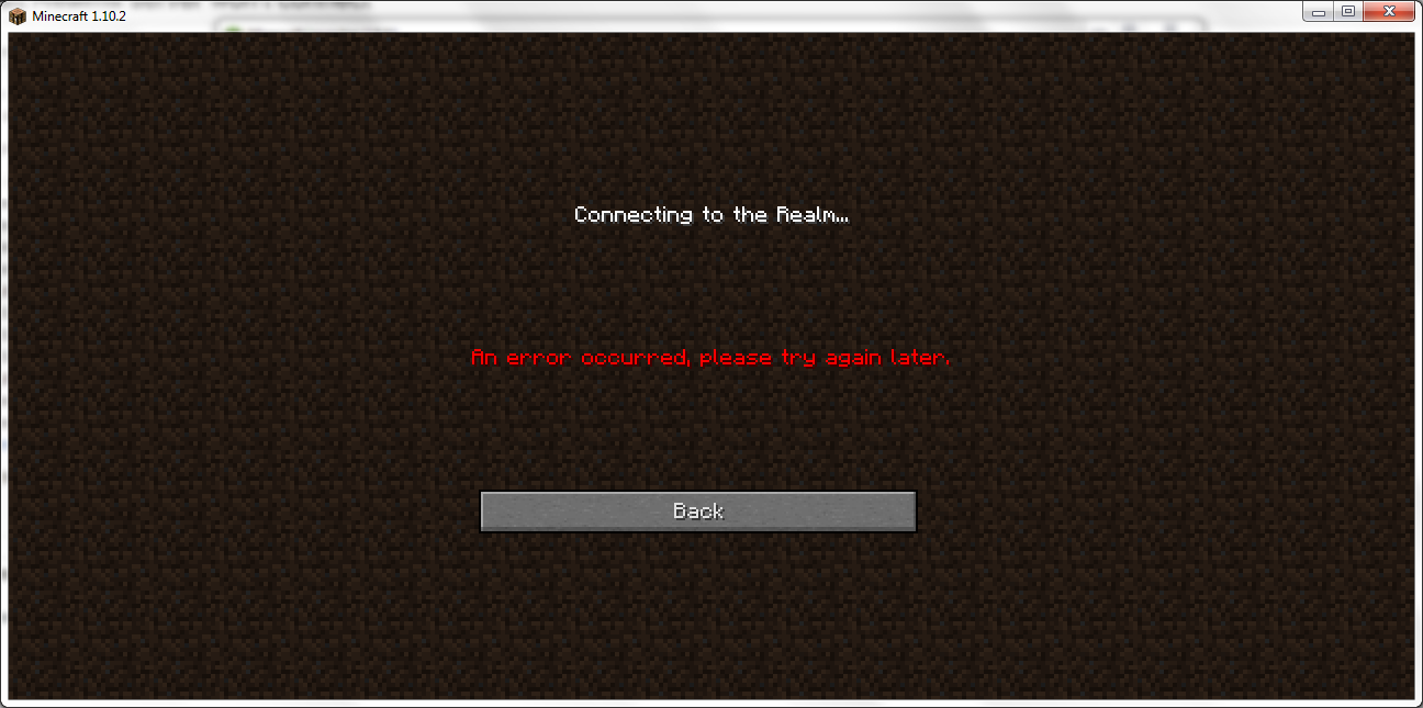 Since the last server restart, which was at the 27th July 2016, 01:13 AM Central European Summer Time, i can't connect to my Minecraft Realms world. The error message after approximately 3 - 5 minutes is: "An error occured, please try again later."