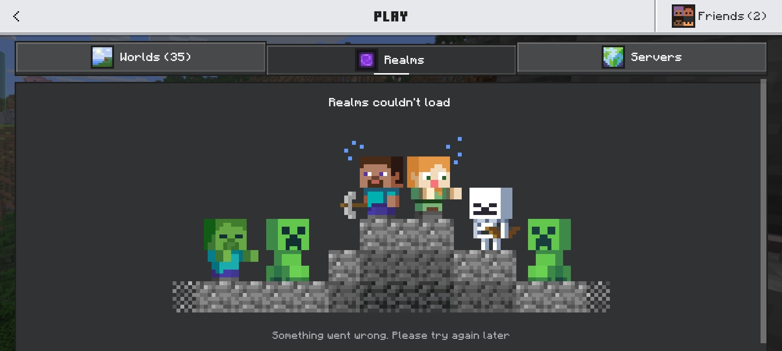 Since this morning, I have been unable to load my Realms on Minecraft Bedrock Edition.