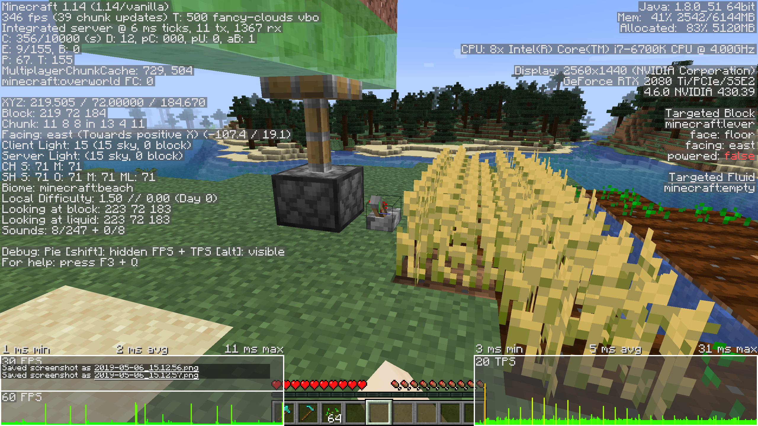 Many activities that cause blocks to update result in lag spikes, specifically in Realms. Culprits include but are not limited to: planting seeds, breaking wheat, fire spread, breaking logs that are touching leaves, and pistons (cause the worst lag). Taking part in any of these activities usually causes a brief but very sharp lag spike taking frames below 10 fps. Spamming the pistons causes the game to practically freeze. I tested this in SP and found none of the issues occur there... Only Realms