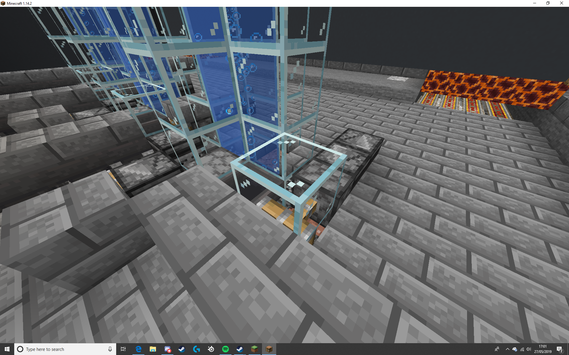 On our realms server I created a dropper elevator, however seemingly for no reason, the final hopper wont place items into the dropper. This happens for all of them. Strangely, its passes 3 or so items through whenever a block update is applied, so I placed a piston on a clock to update the block and it works fine, but creates a lot of unnecessary lag.