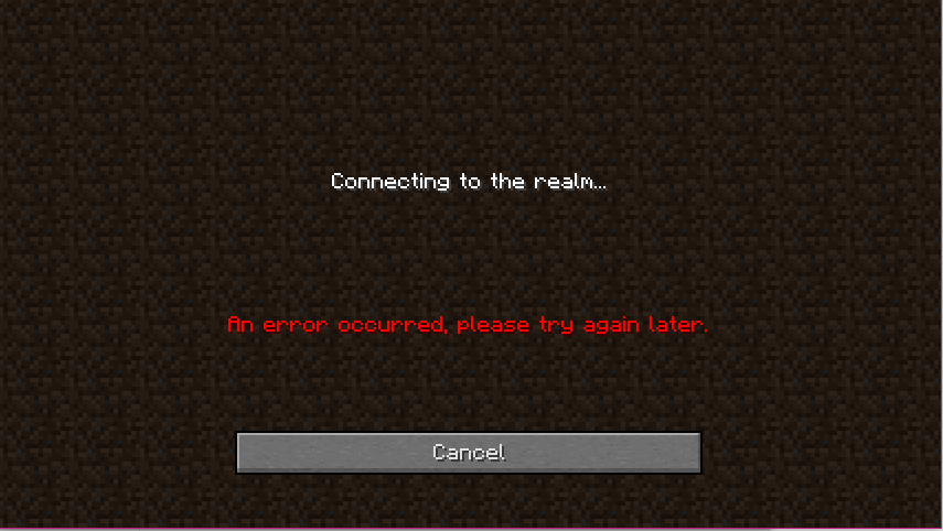I'm having this same exact problem now with the "an error occurred, please try again later" thing. We have about 6 people connected to the realm and all of us have this same error popping up when we try to join. I've been looking for a solution to this. I've seen other people with the same problem but haven't found a solution to it yet. If you want to try and recreate it, we were just switching through mini games and playing on them. When we started up a min game called "arrow rain" was when the error started showing up. If you guys could help that'd be great