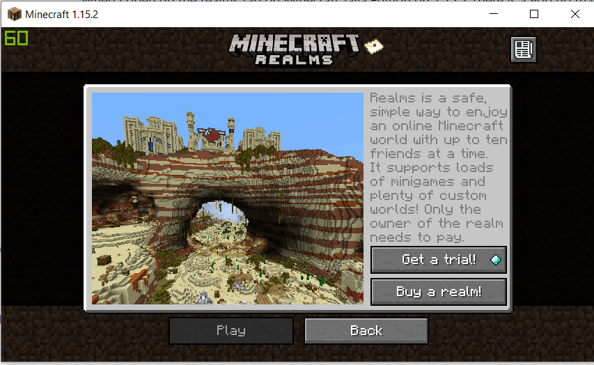 When I open up the realms tab on Minecraft Java Edition on 1.15.2 There is a Pop up that comes up asking me to either buy a realm or get a trial. I am trying to connect to my friends realm but this pop is blocking me from seeing it. And from what I can tell there is no way to get rid of the pop up.
