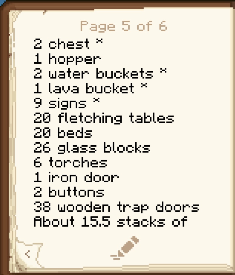 For items i need more then 64 i stated that i needed a number of stacks + few items, to abbreviate Stack I used "P" so in my book i have for example "84 Pistão (1P+20)" and this works fine, but in the next line i also have "82 redstone (1P+18)" and for some reason the "(1P+18)" is replaced with hashes