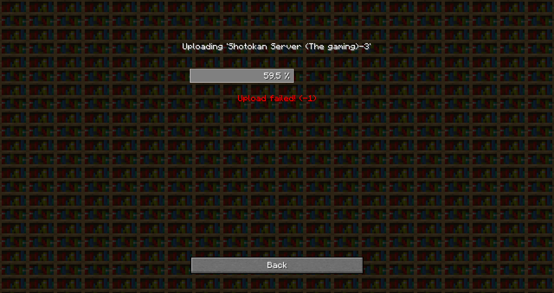 I own a minecraft realm with about 2-6 visitors per day. We have datapacks installed, and I update them regularly. In previous times, I took a backup save of the realm, put it into my single player realm, and inserted datapacks. I would then reupload them, with no problems at all. I've done this two times.Β This third time, I went through the same routine, except when I tried to upload the world, It wouldn't let me. It gave me this screen and won't change the game. I have about 32 datapacks, half of which are just loot table changes or adding scoreboards. I don't think the amount of datapacks are the problem.