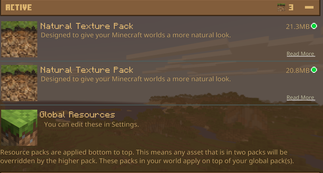 If you download a Realm that had one of these packs activated and open the downloaded copy, the pack works fine, so the problem is only in how Realms is loading resource packs.