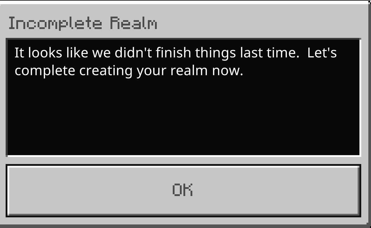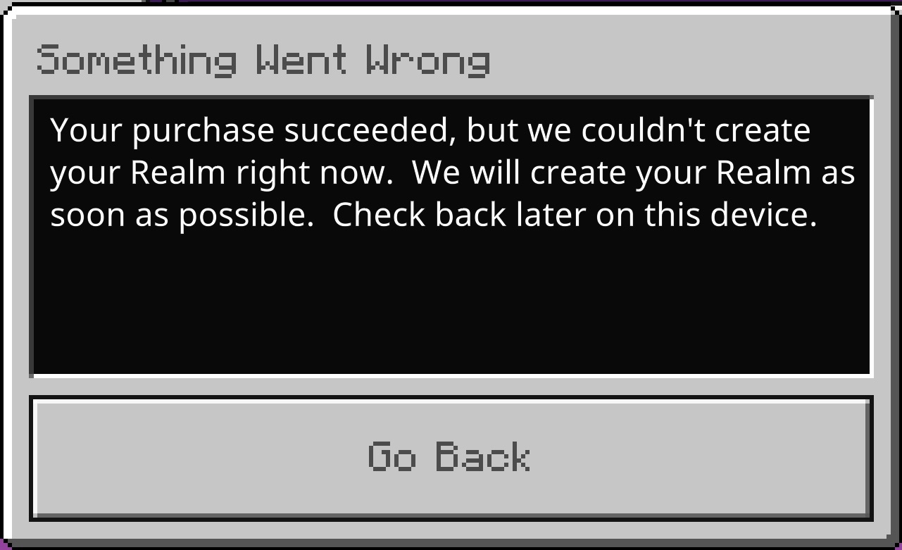Hello. I purchased Realms Plus in December 2018. Everything worked wonderfully until a month ago. I went on my Realm and it crashed. As I was investigating, I went on the Realms Plus page on the Marketplace and Message 1 appeared. I clicked ok, it says "Creating Realm" and then the second message came up. This has happened numerous times. What should I do?