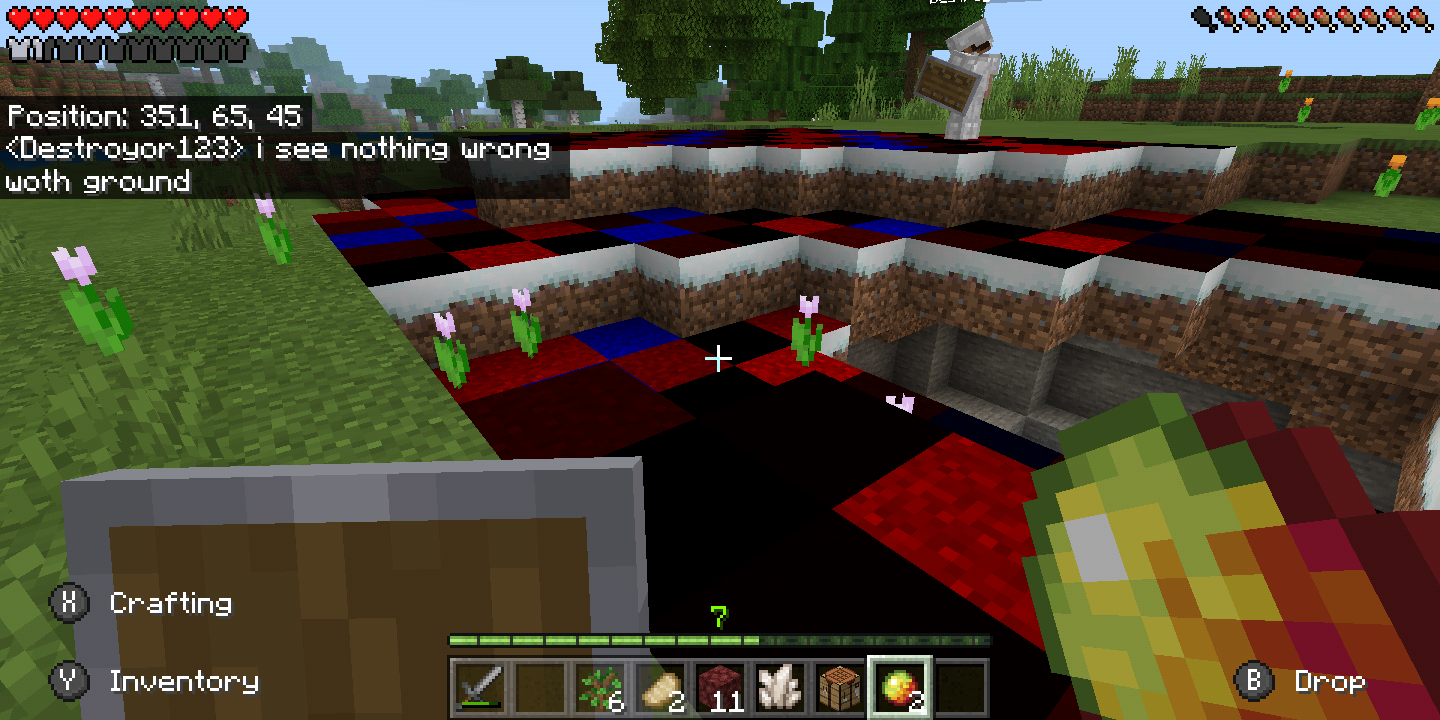 I joined a realm server the other day with some friends and i happen to stumble across a multi colored patch of land, it was a snowy grass block patch on the side but strange colors that wouldn't normally be in the game in a plains type area, we could all see the patch and were confused, we could interact with it and pick up the blocks (they appeared normal in our hotbars but weird on the ground), we left the realm and joined back and it was still there. We aren't sure what happened to the textures but they are there.