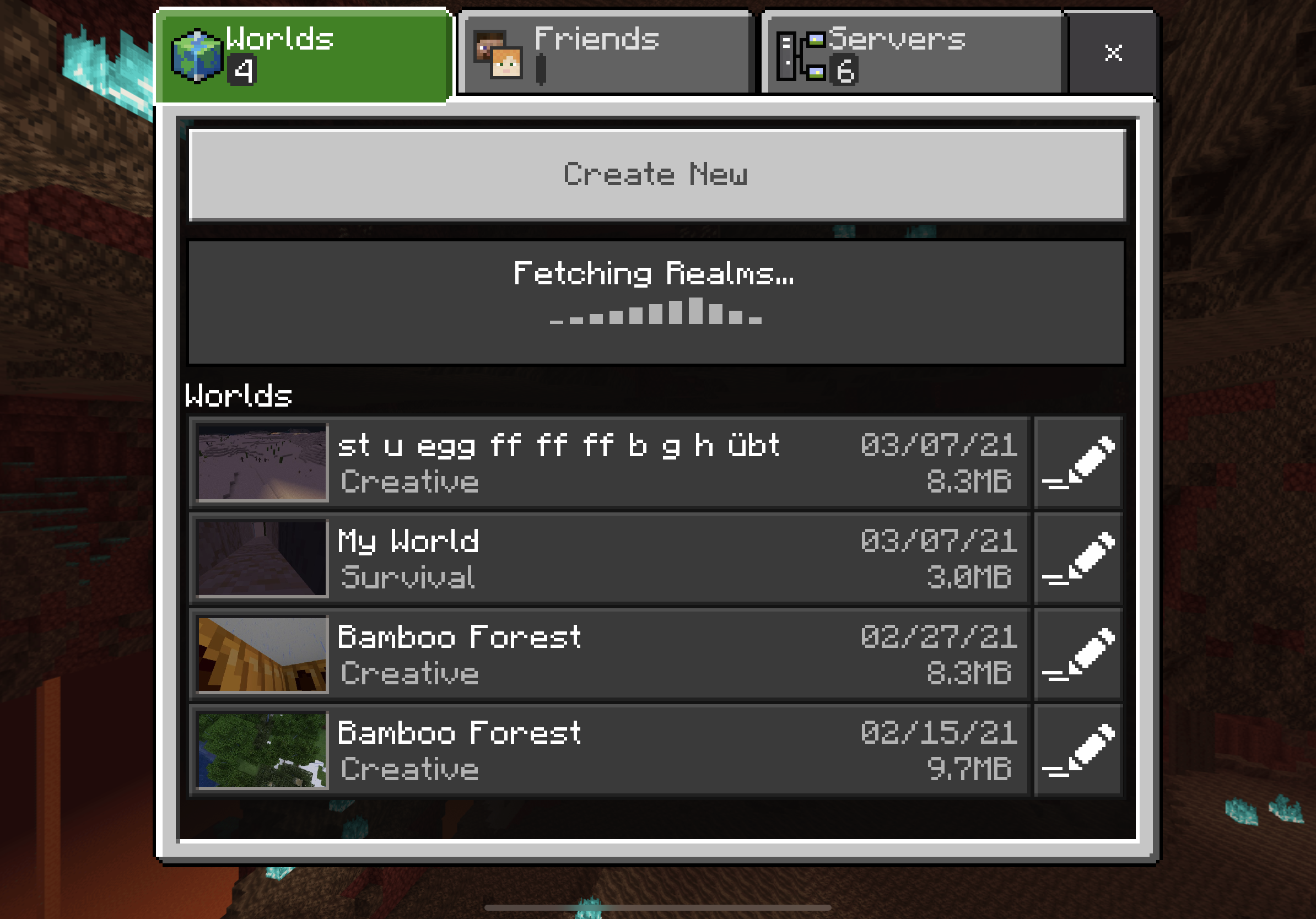 Playing in a realm, if the device sleeps, you leave the realm, but then the realm never reloads in the worlds list.
