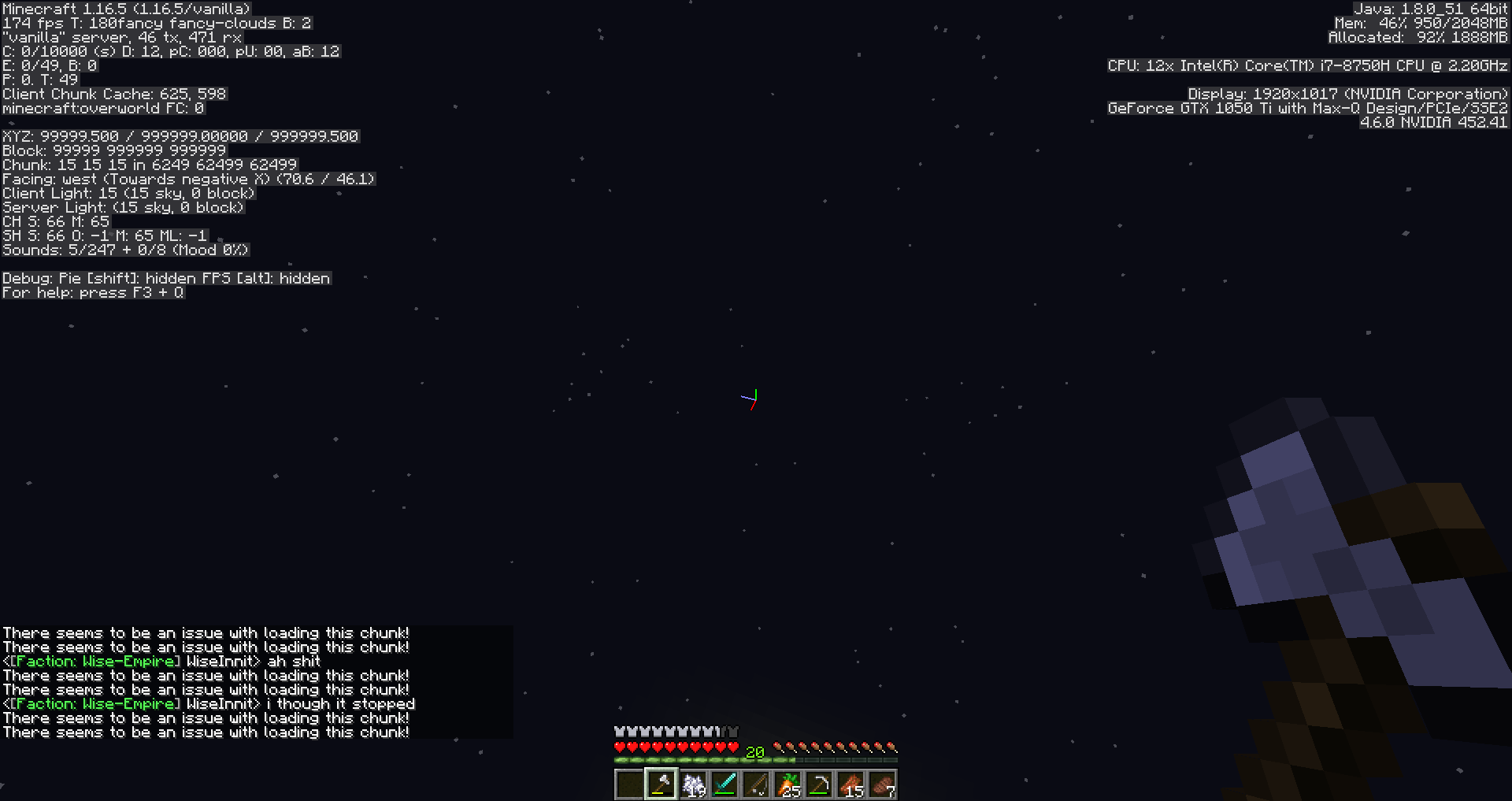 Me and my friend were playing on my realm and suddenly it displays that there has been an issue with loading the chunk and it sends all players to 999999 999999 999999 HELP! This is on 1.16.5
