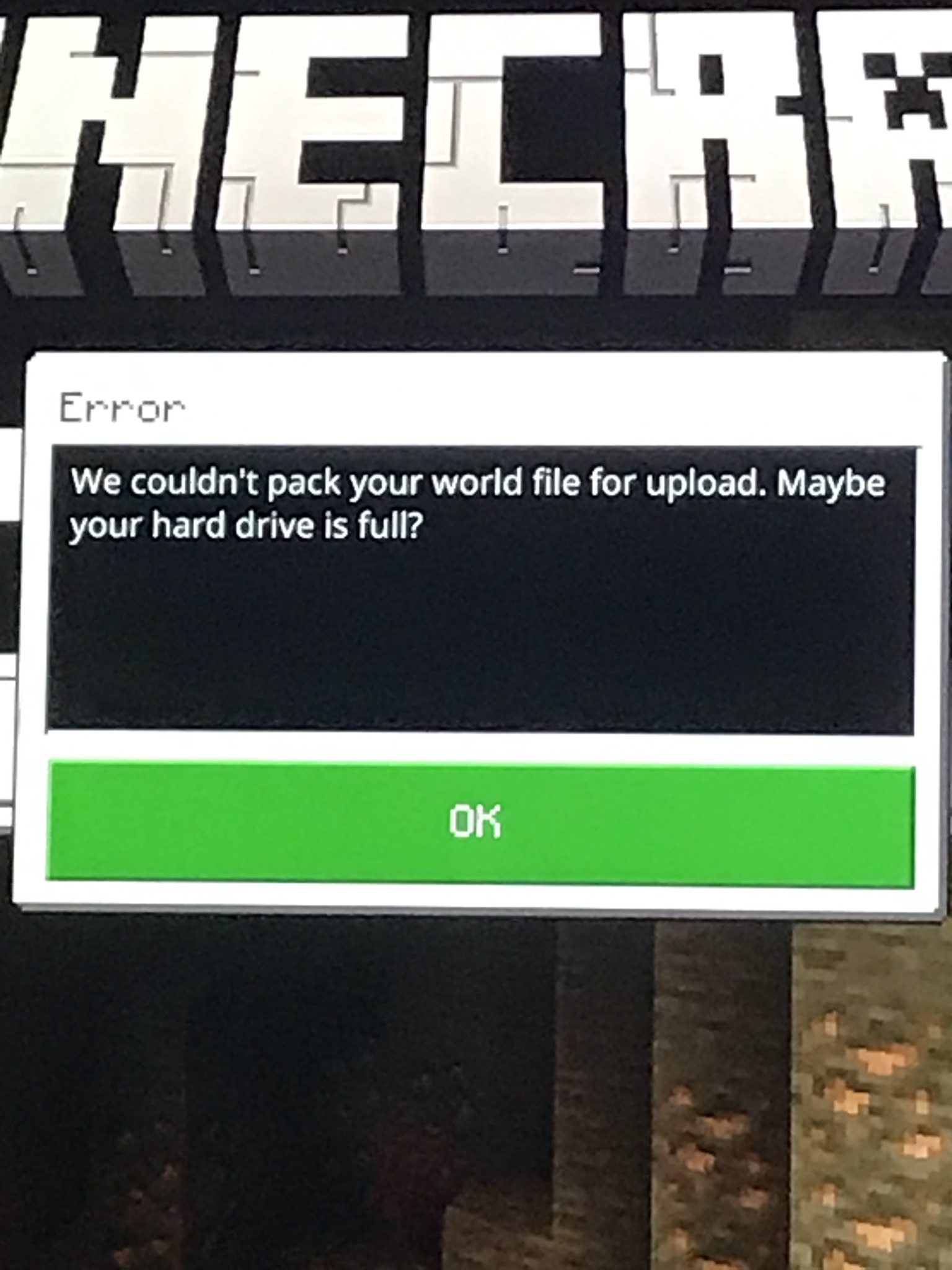 i was trying to replace my realm world but it came up with the message "we couldn't pack your world file for upload. maybe your hard drive is full." but i have loads of storage as i only have 3 realms and one world. and idea on how t fix it because i dont want to waist my monet on a realm that i wont play on.