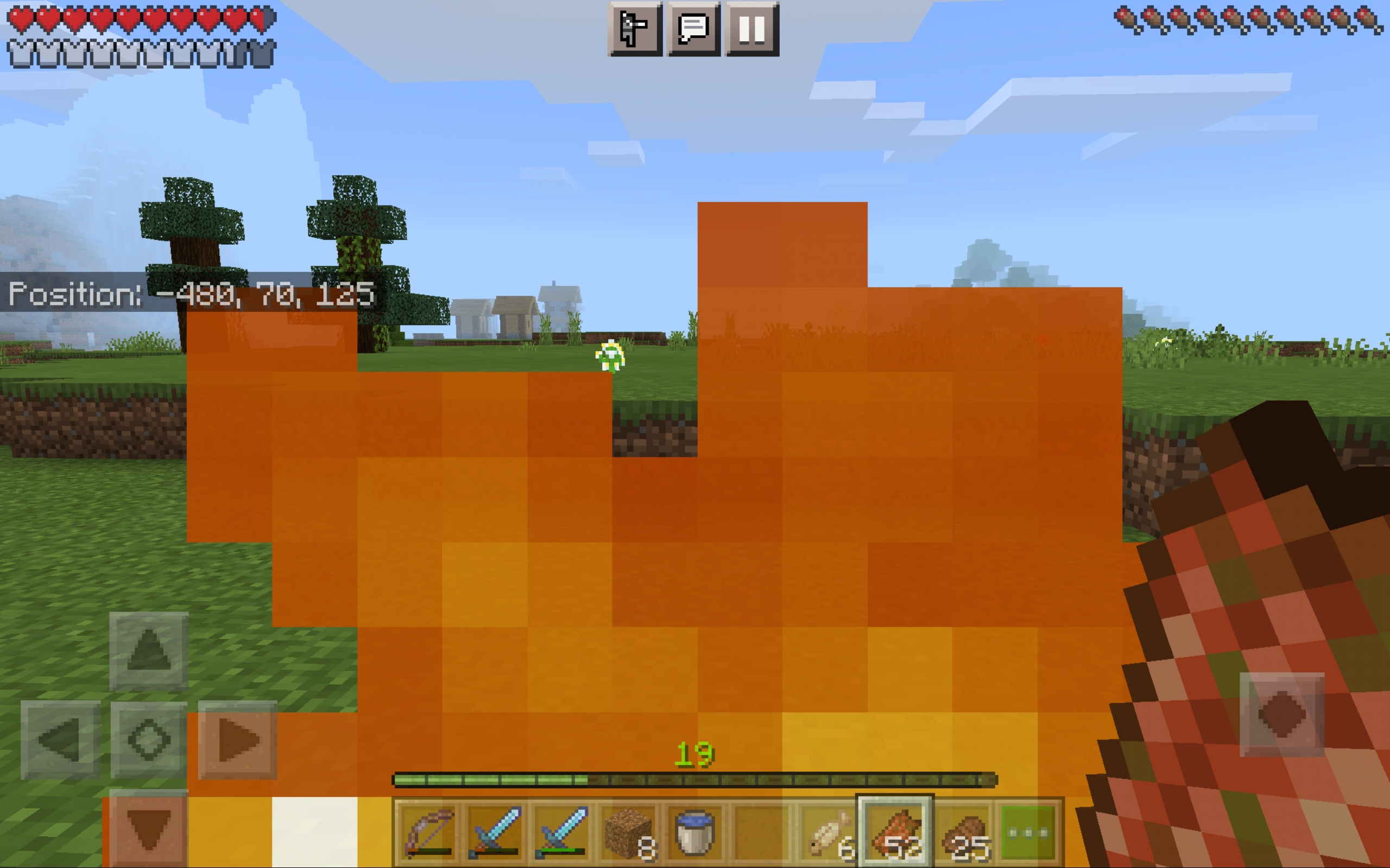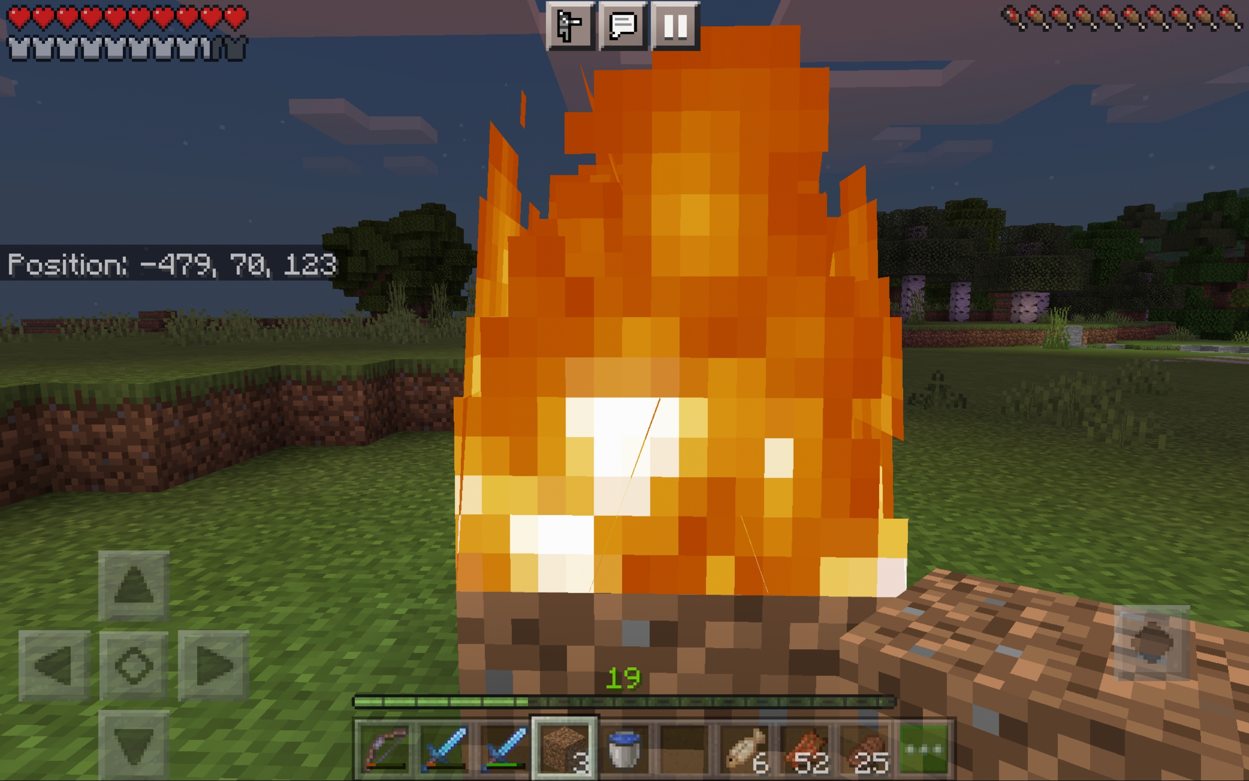 Invisible Fire. Remove a block that is on fire. Fire disappears, block goes into inventory. Walk forward and catch on fire. Place block down and fire appears on top of block.