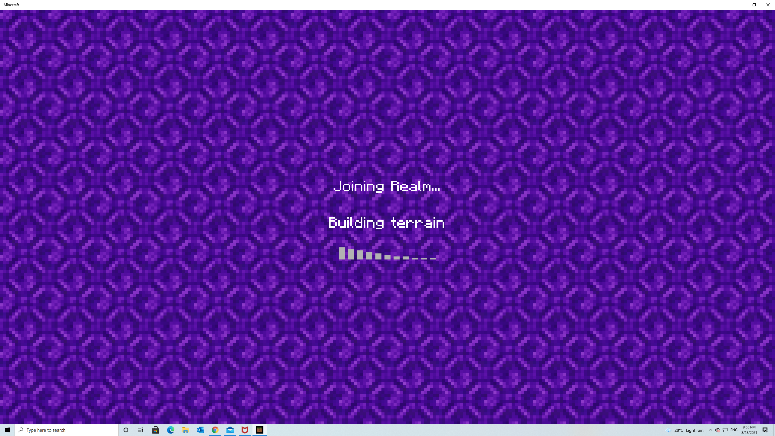 i was stuck in the Joining Realm Building Terrain Screen for more than 40 min and afterwards i tried to joined back to realm server after closing my game,restarting my PC and restart my router but it work at all.