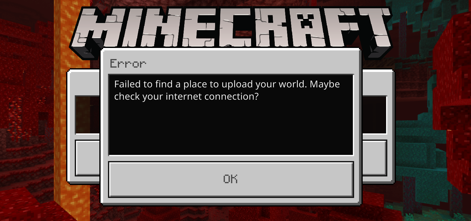 hi so basically when i go to upload a world to my 10 player world the level export is successful but it then throws an error saying, Cannot find a place to upload your world, Maybe check your internet connection. The current world is 6gb and the one i want to upload is 150mb. This has been going on since the 1.17.2 update and i believe that alot of people are having this issue.
