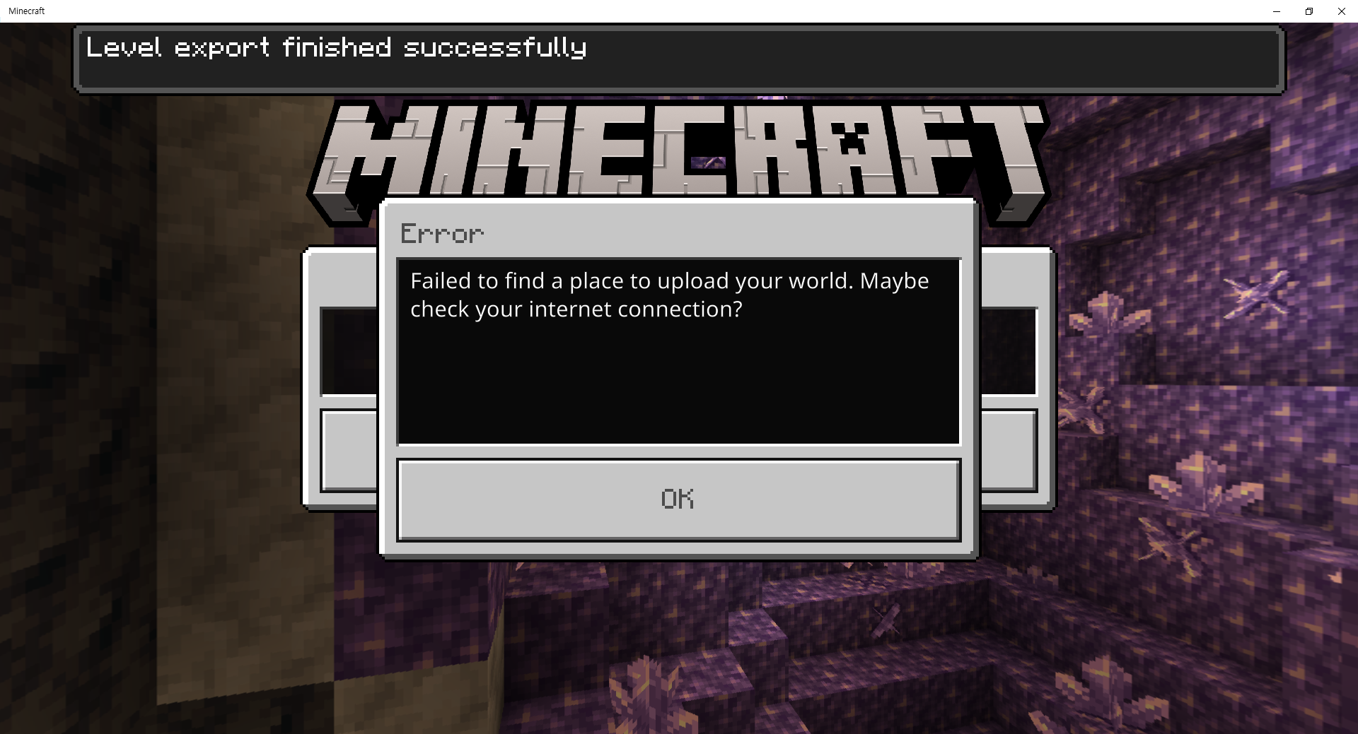However, there is now an error in replacing the world that is less than 100mb.