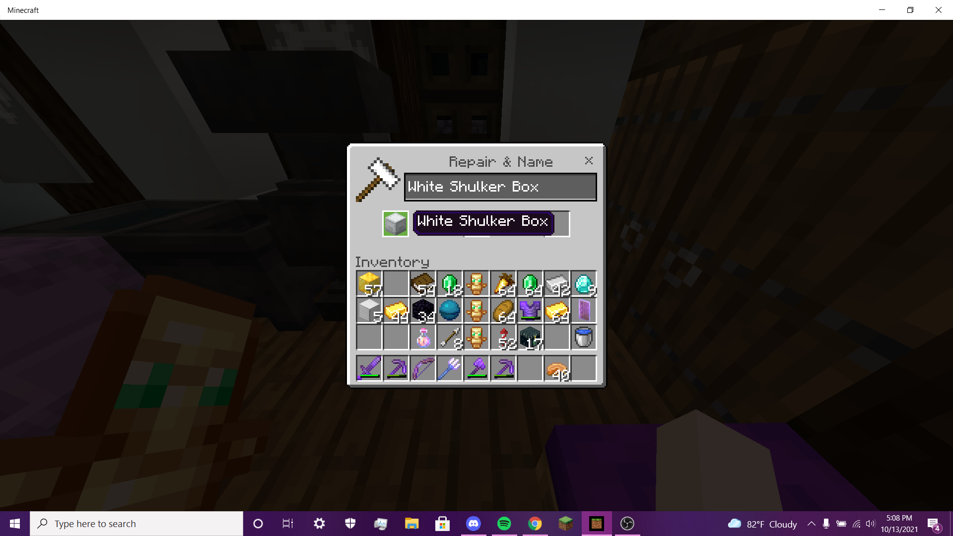 how this glitched happened is when i combined some soul speed 2 books together and then i wanted to rename my shulker box to "loot box" but i was unable to rename it for some reason. so i then decided to created a new world creative world to see if i was unable to rename it, to my surprise i was able to rename items. i dont know how to fix this