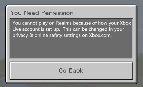 So, when I try to create a realms server is tells me that I need permission because of how my account is set up, and I can change it on xbox.com.