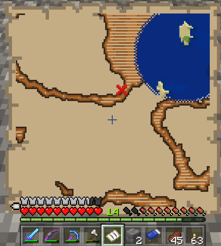for 2 separate maps, opening a treasure map just started filling in the map for the current chunk I was in, that clearly does not match the terrain of the map in question (in both cases I was basically in open ocean, just small islands). I had a locator map open in my off hand at the same time when I first opened the map. It was basically treating the map like a new blank locator map, instead of being fixed to the location where the treasure is.