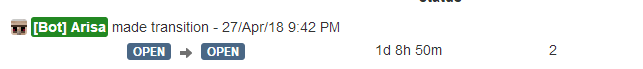 Now, one thing that's a bit silly is that looking from feeds, JIRA will say "Arisa opened issue XXX" and the history only says "Open -> Open"; for some reason JIRA doesn't specify the actual transition name. They seem to have declared with as won't fix (JRASERVER-18528, JRASERVER-39904) though.